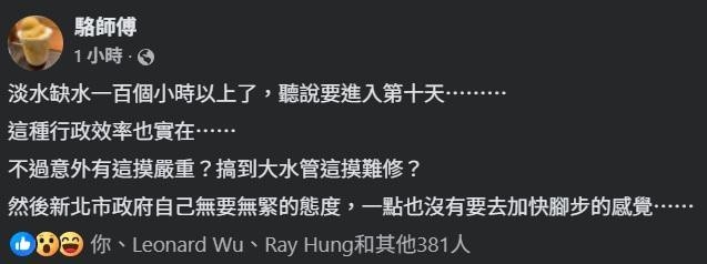 淡水缺水一百個小時以上了,聽說要進入第十天⋯⋯⋯