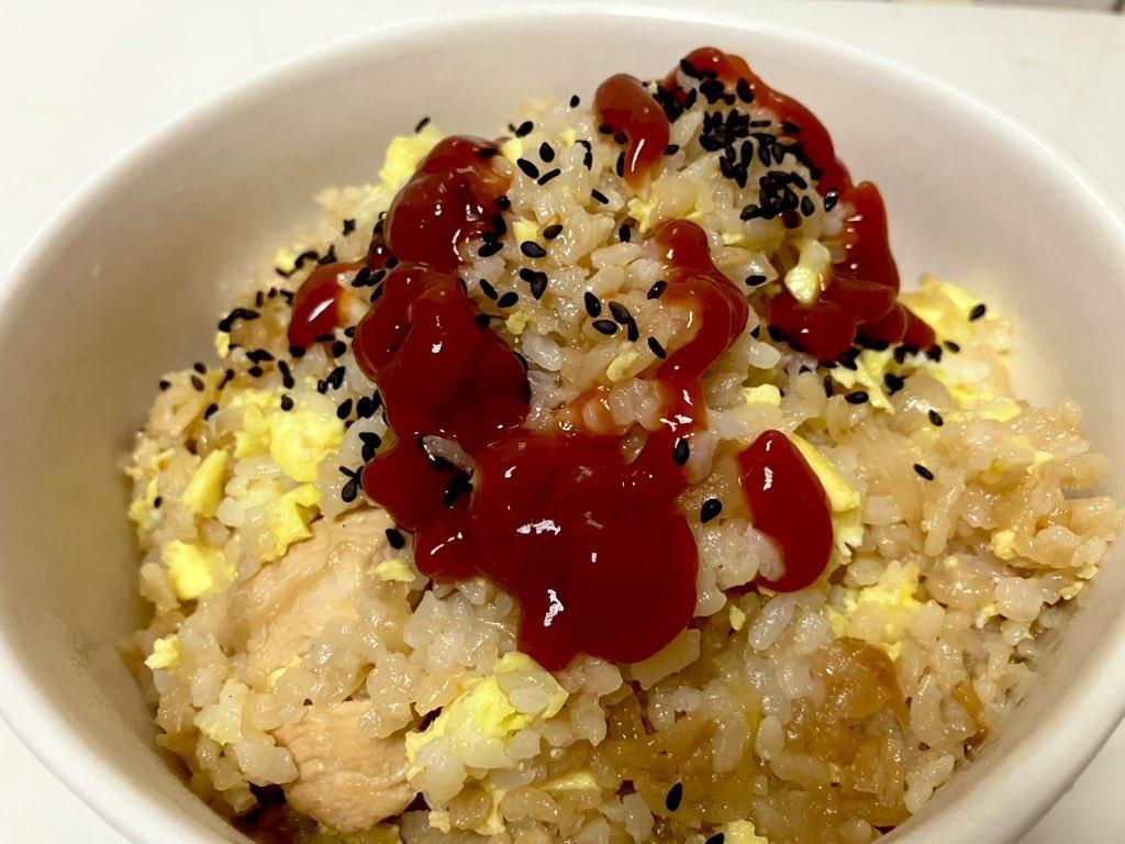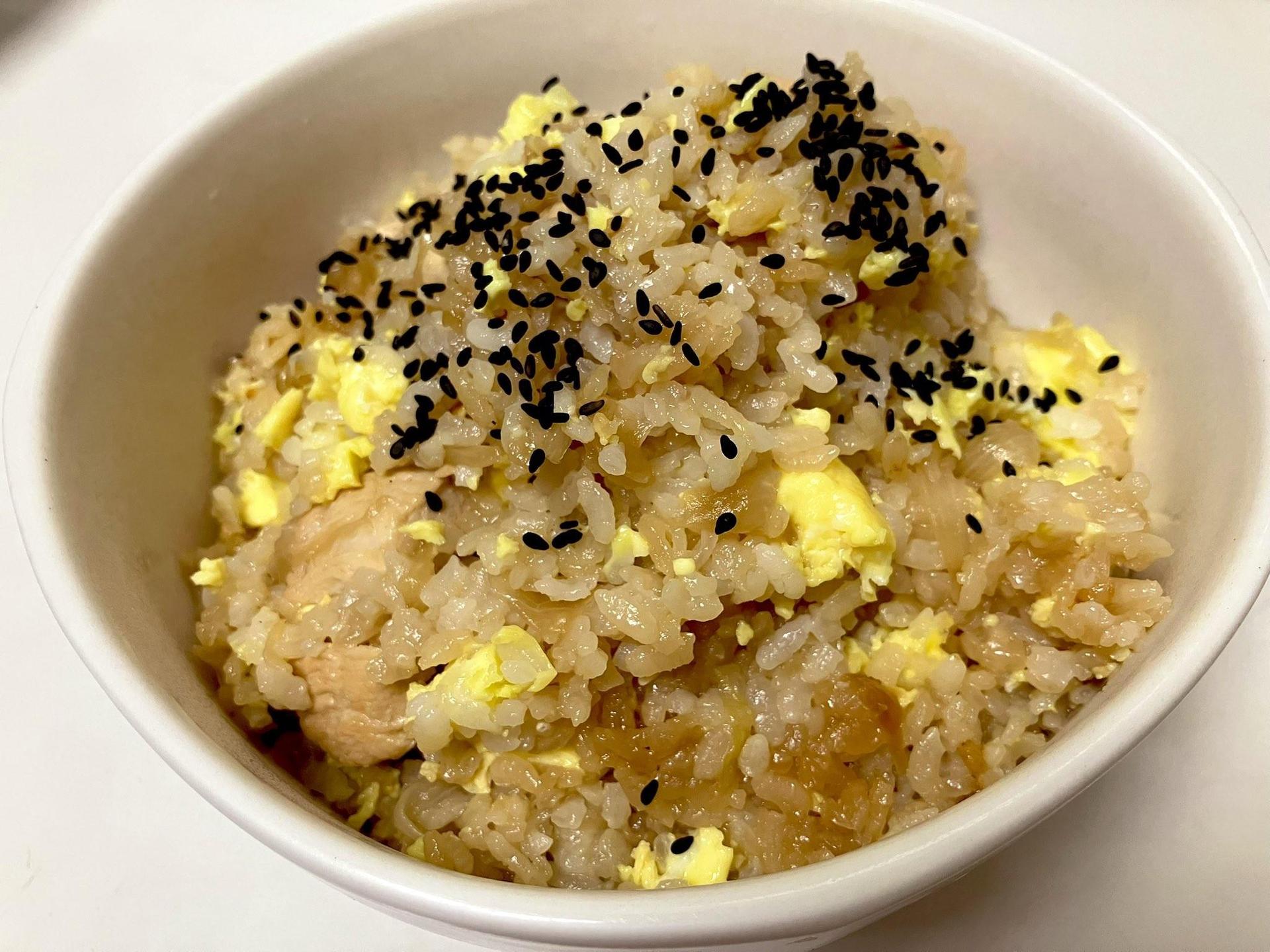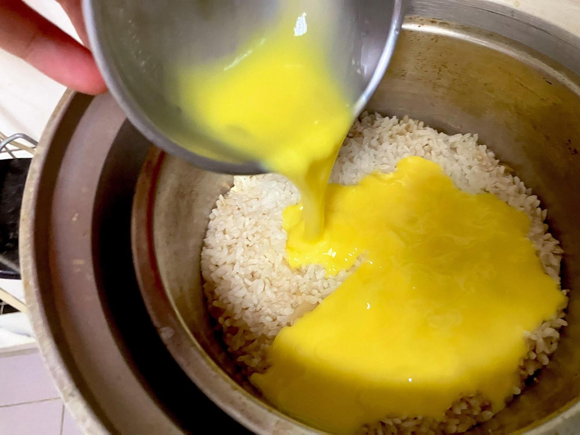 5、等待跳起後,開蓋將蛋液澆進去,蓋起並悶個10分鐘,拌鬆完成