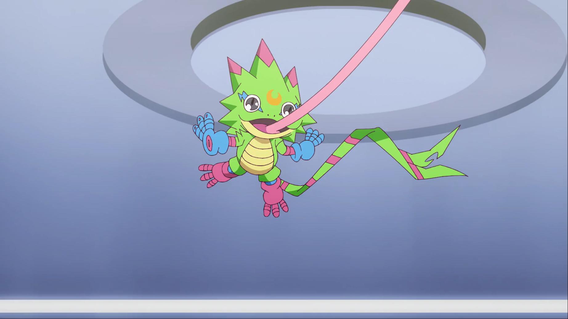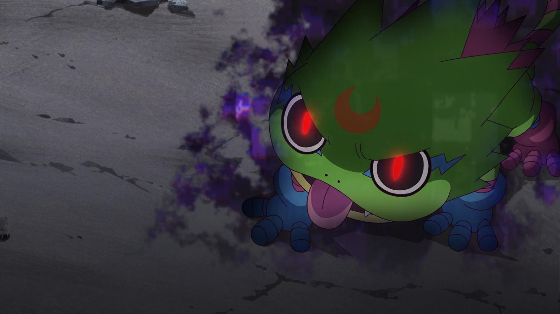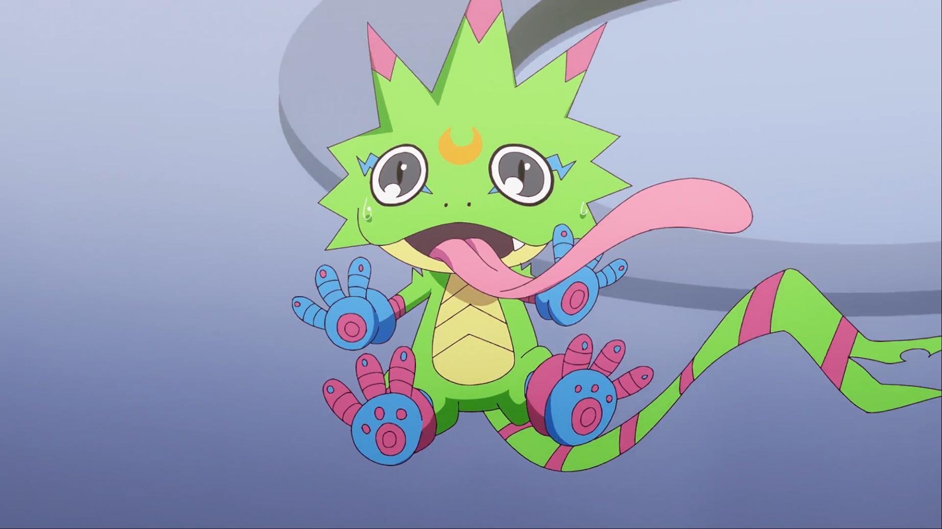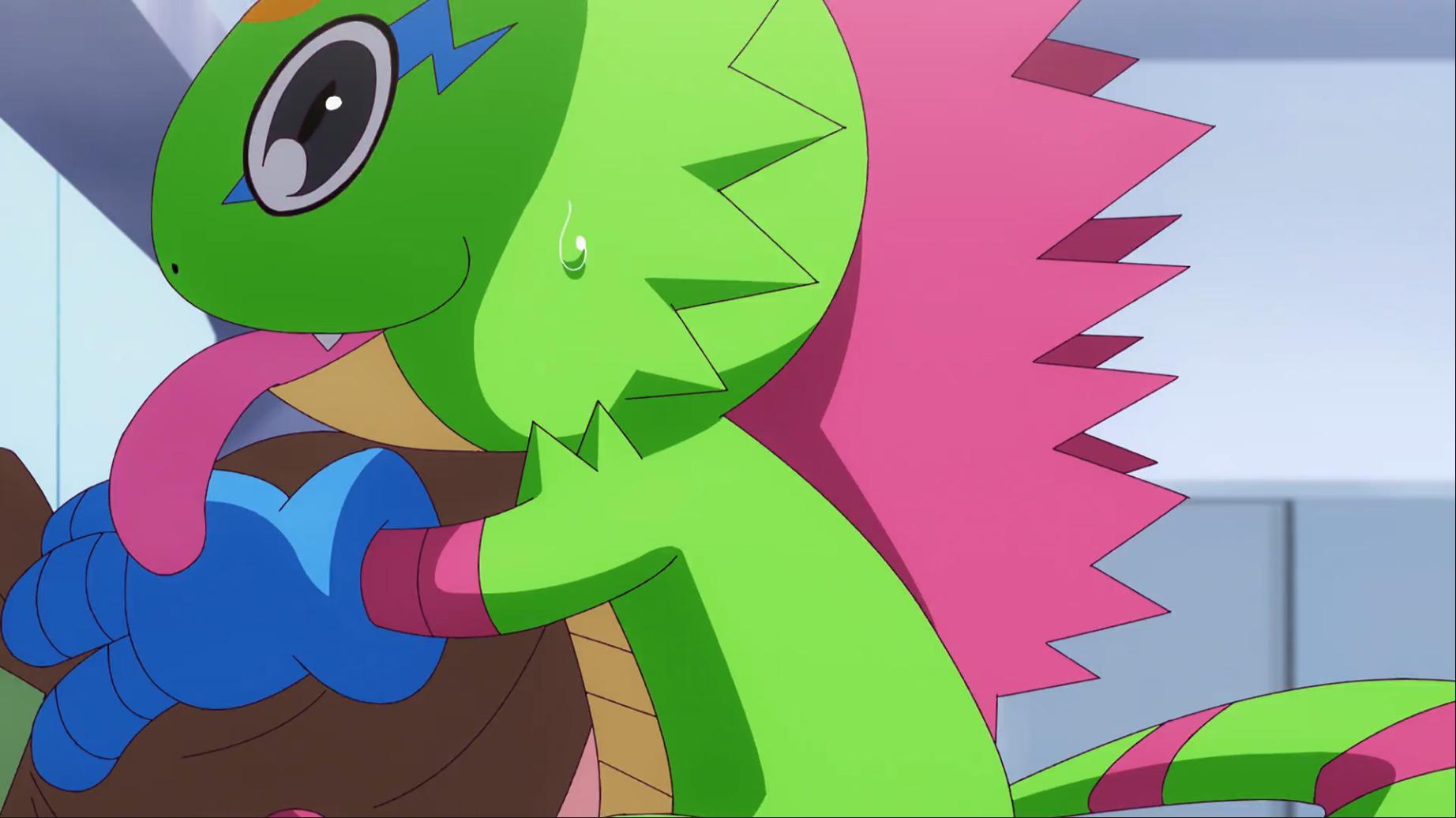 如今壁虎獸被退回到幼年期且黎明團和偶像光美差點被團滅 智郎得要想辦法讓呱呱獸進化回壁虎獸了...