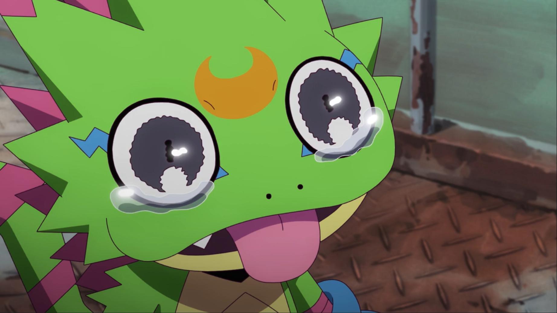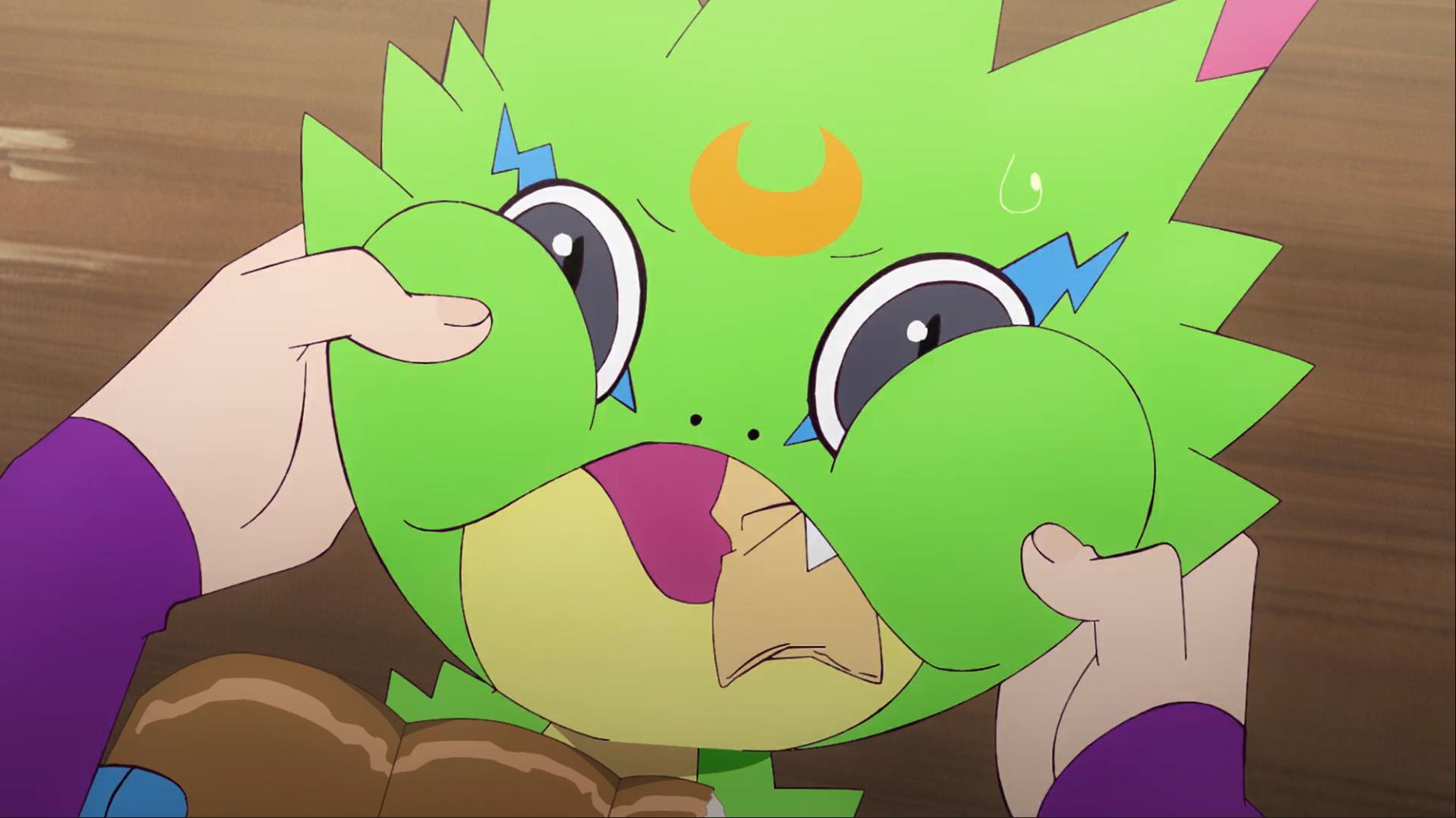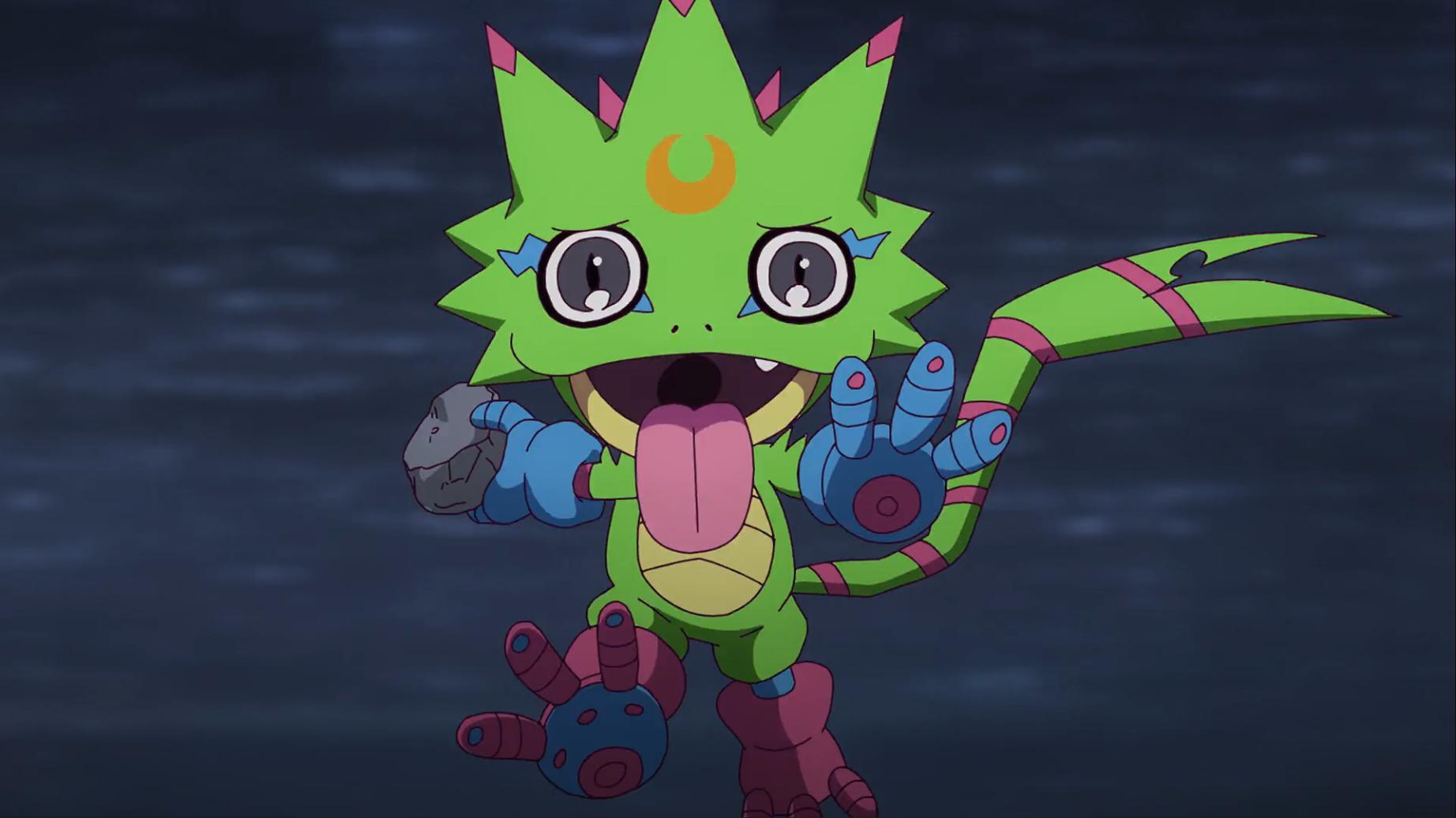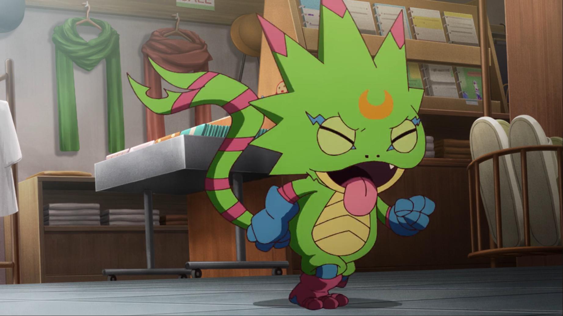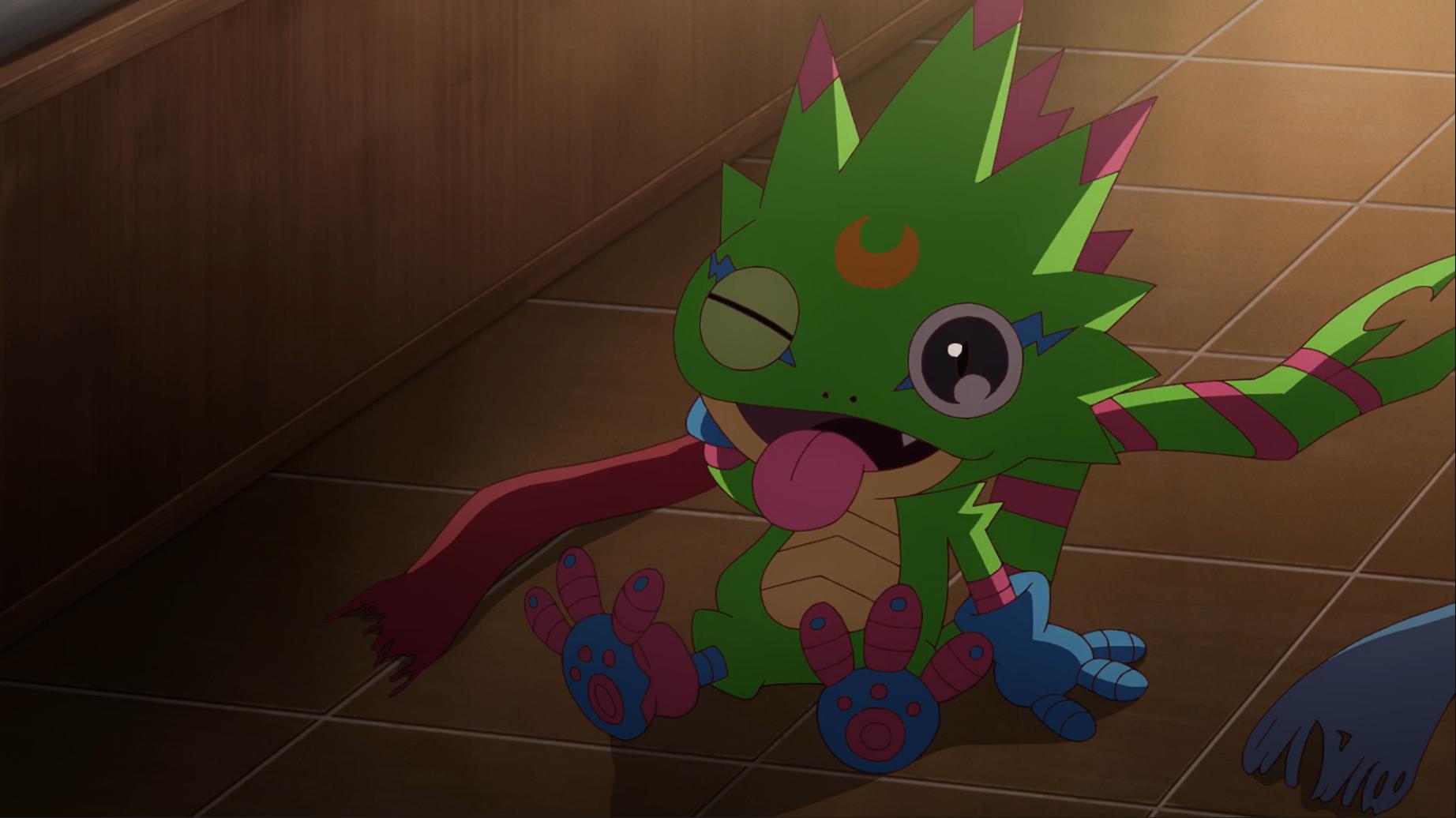 如今壁虎獸被退回到幼年期且黎明團和偶像光美差點被團滅 智郎得要想辦法讓呱呱獸進化回壁虎獸了...