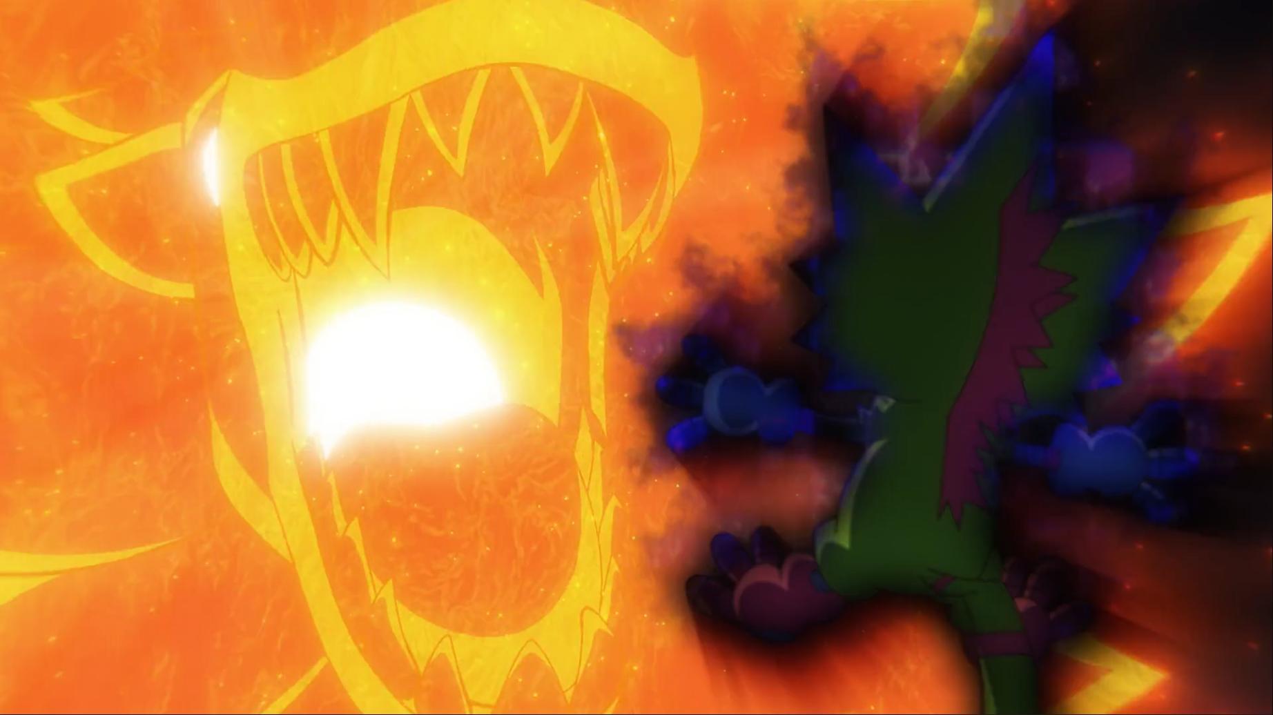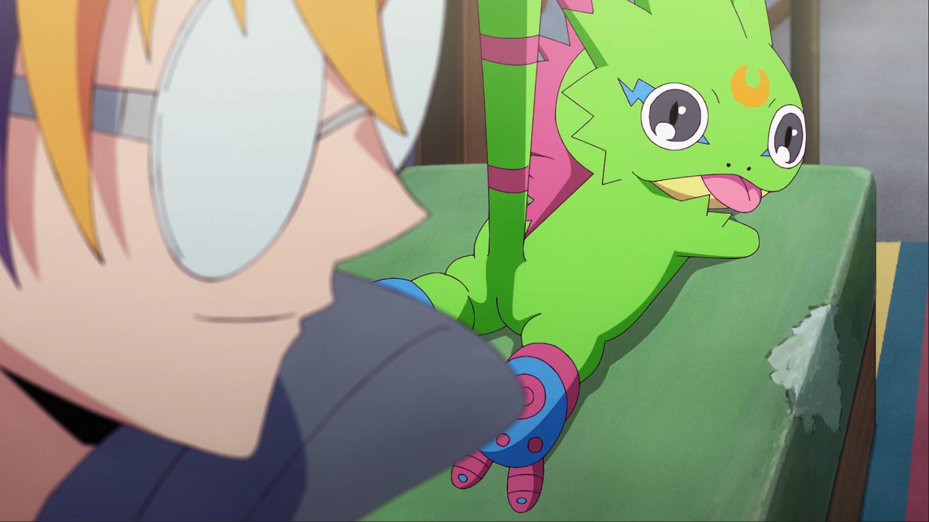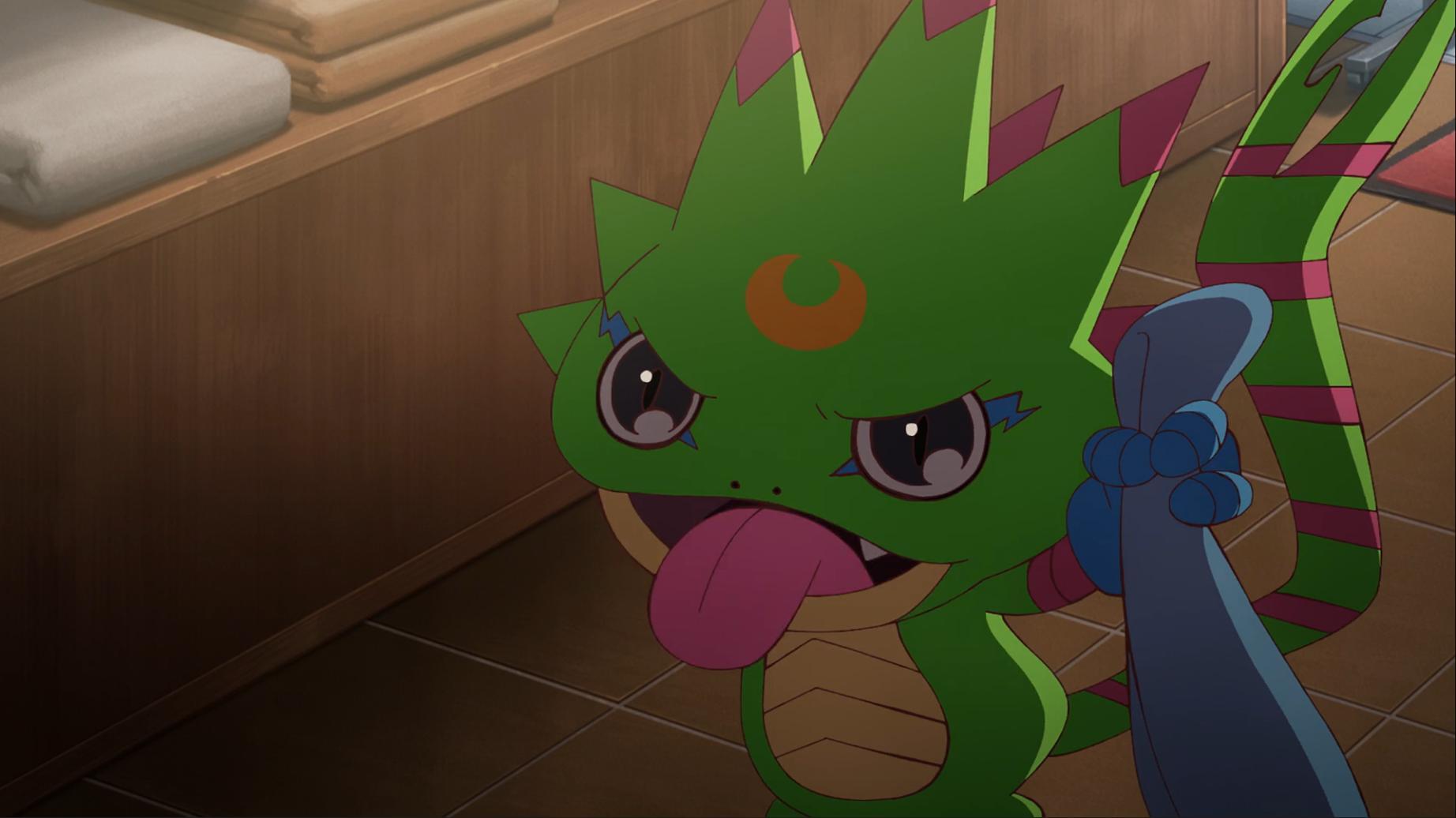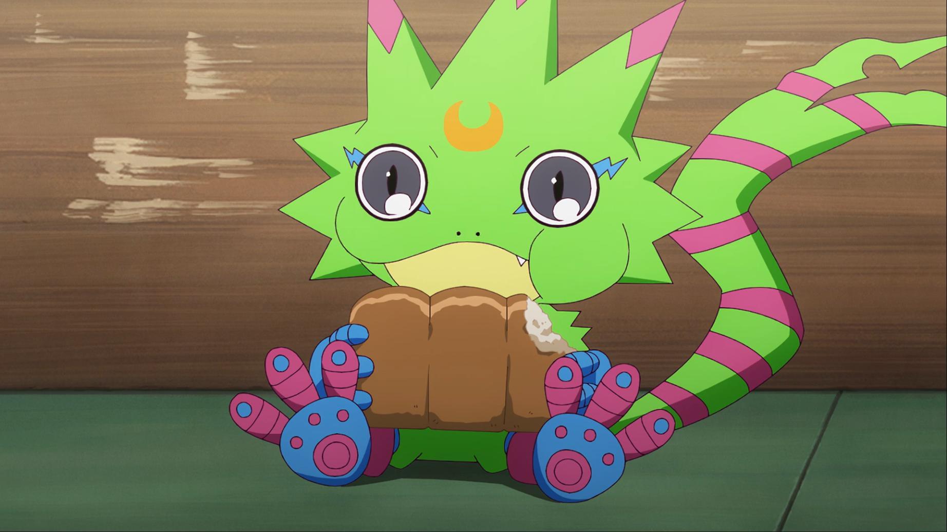 如今壁虎獸被退回到幼年期且黎明團和偶像光美差點被團滅 智郎得要想辦法讓呱呱獸進化回壁虎獸了...