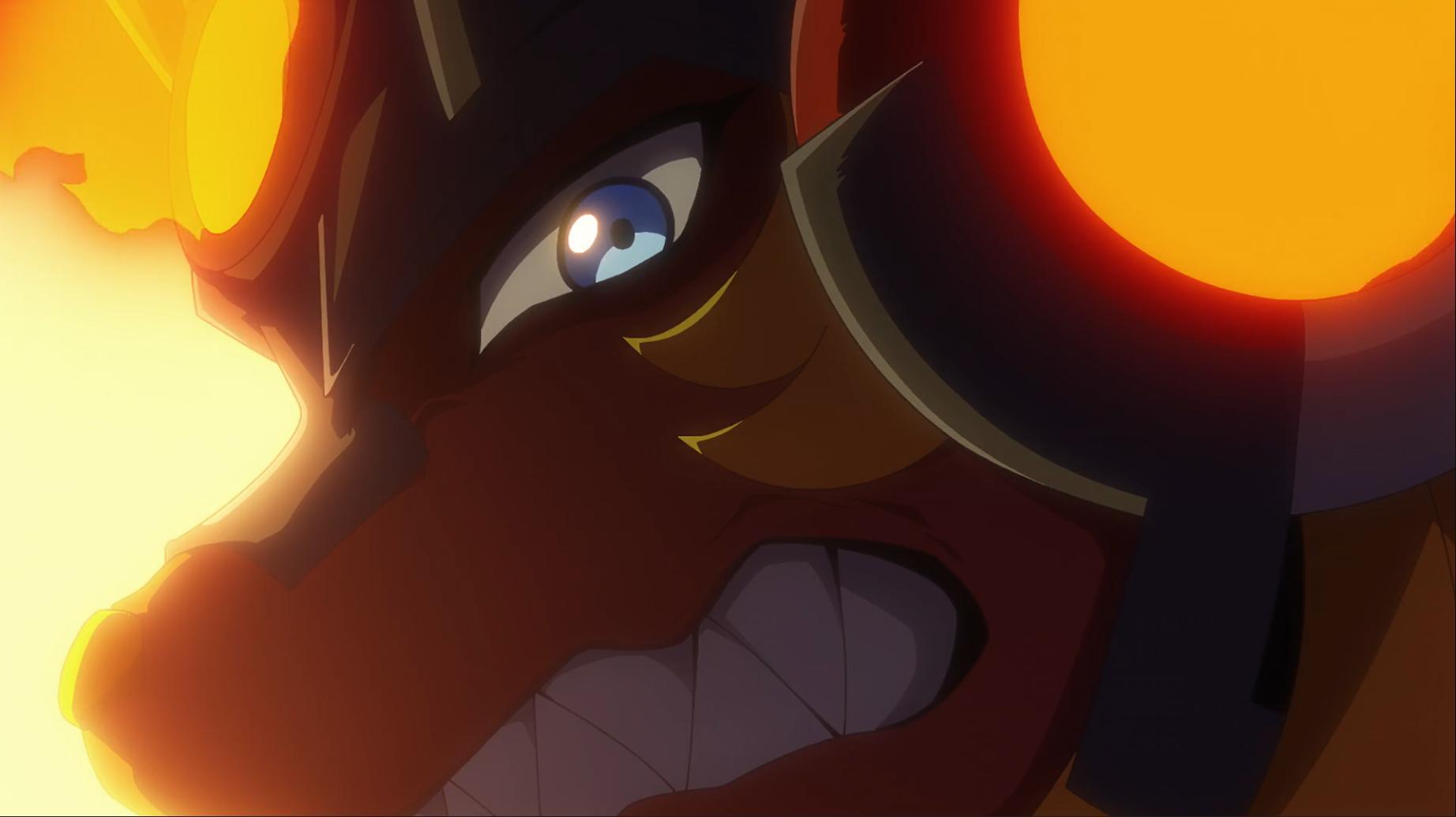 誰知本來失控躺平的壁虎獸突然起身朝凱特和耀獅獸攻過去 智郎和偶像天使見狀趕緊跑上去阻止他 而本來心情不好的凱特看到壁虎獸殺過來後直接指揮耀獅獸把他燒了 京大哥也跟著衝過去 就在壁虎獸反擊的瞬間耀獅獸發動大招紅蓮獅王波朝壁虎獸轟過去 眼看這波大招要轟向壁虎獸了 姐姐我說壁虎獸小心啊...