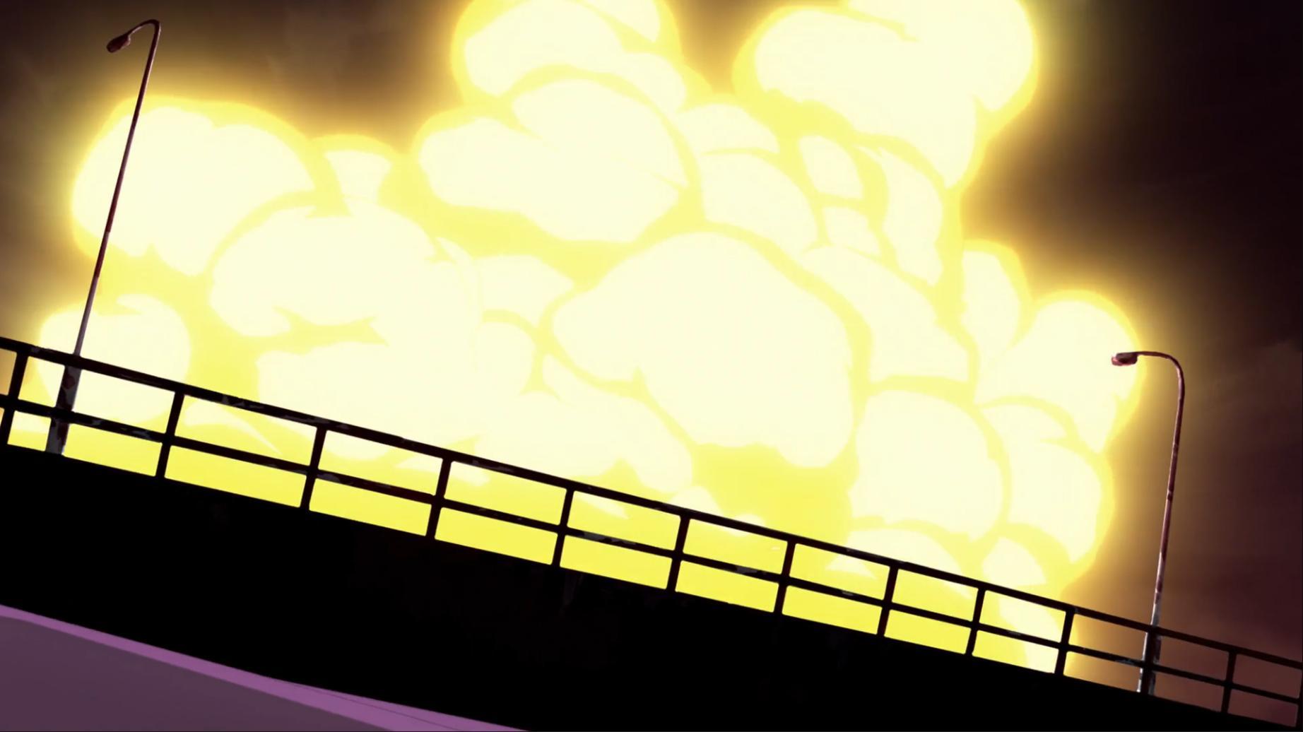 叢雨獸和媚眼天使衝上前同時以巨劍和盾牌誘爆了這發攻擊 結果形成大爆炸造成餘波席捲周圍 就連站稍遠的蕾娜和心心小誠普莉露梅洛倫和田中都被波及到 京大哥以身護智郎倒地不起 叢雨獸手持巨劍支撐身體一手抱著陷入昏迷的媚眼天使 偶像天使為保護壁虎獸不被紅蓮獅王波擊中 自己也跟著重傷倒地不起...