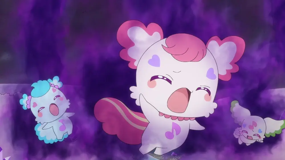 夜蝠獸心戀天使和親親天使隨後救下小熊貓獸和心心 卻也跟著被吸到毒氣強制退回成長期和解除變身...