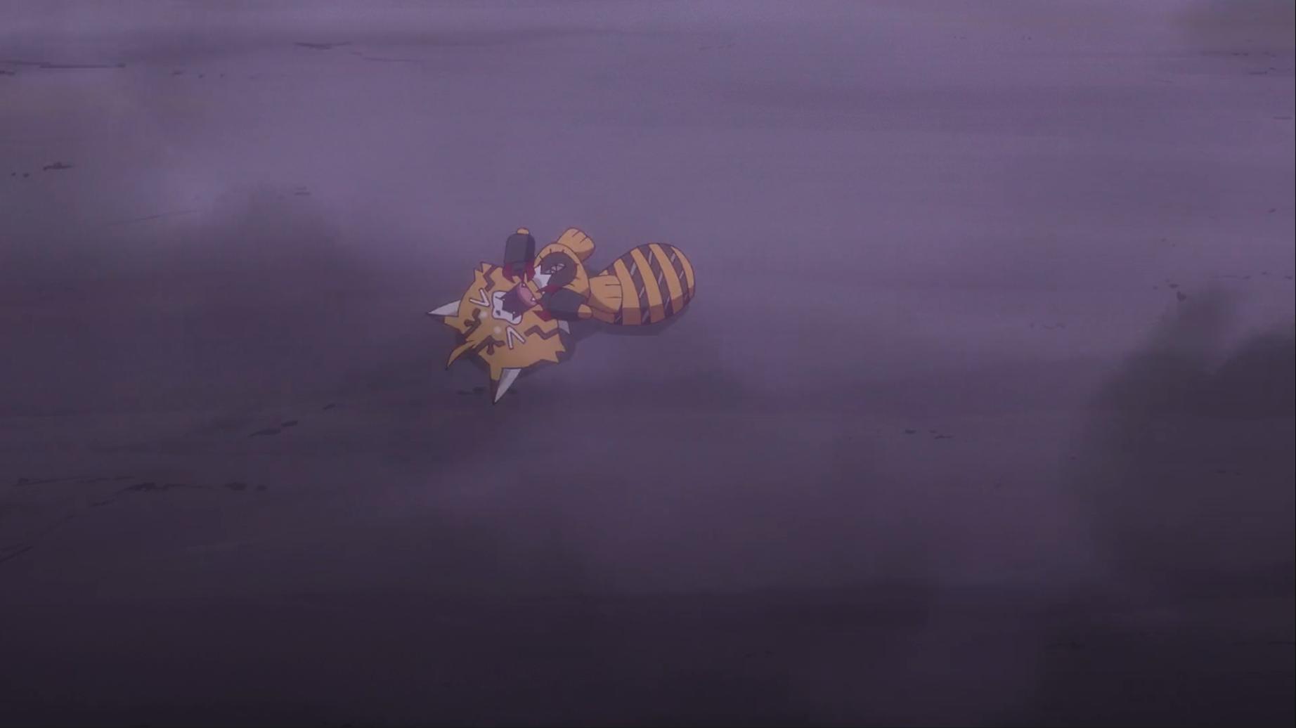 這下小熊貓獸和心心 兜帽蝠獸普莉露和梅洛倫都被毒氣影響呈現痛苦了 田中沒想到爛泥獸會這麼厲害 爛泥獸從身上散發大範圍毒氣枯萎周圍花草 京要蕾娜和小誠等人趕快帶心心普莉露梅洛倫他們遠離毒氣...