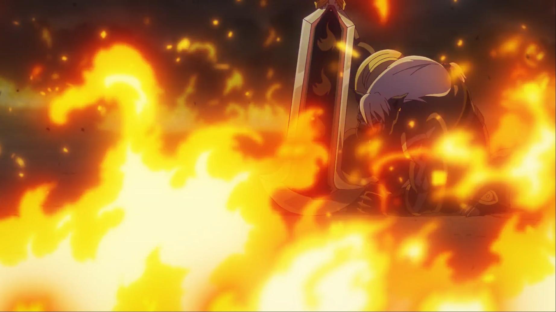 這時從後方突然出現火紅色光芒 之後噴出一發巨大強力火焰將爛泥獸連同周圍的毒氣燒得乾乾淨淨了...