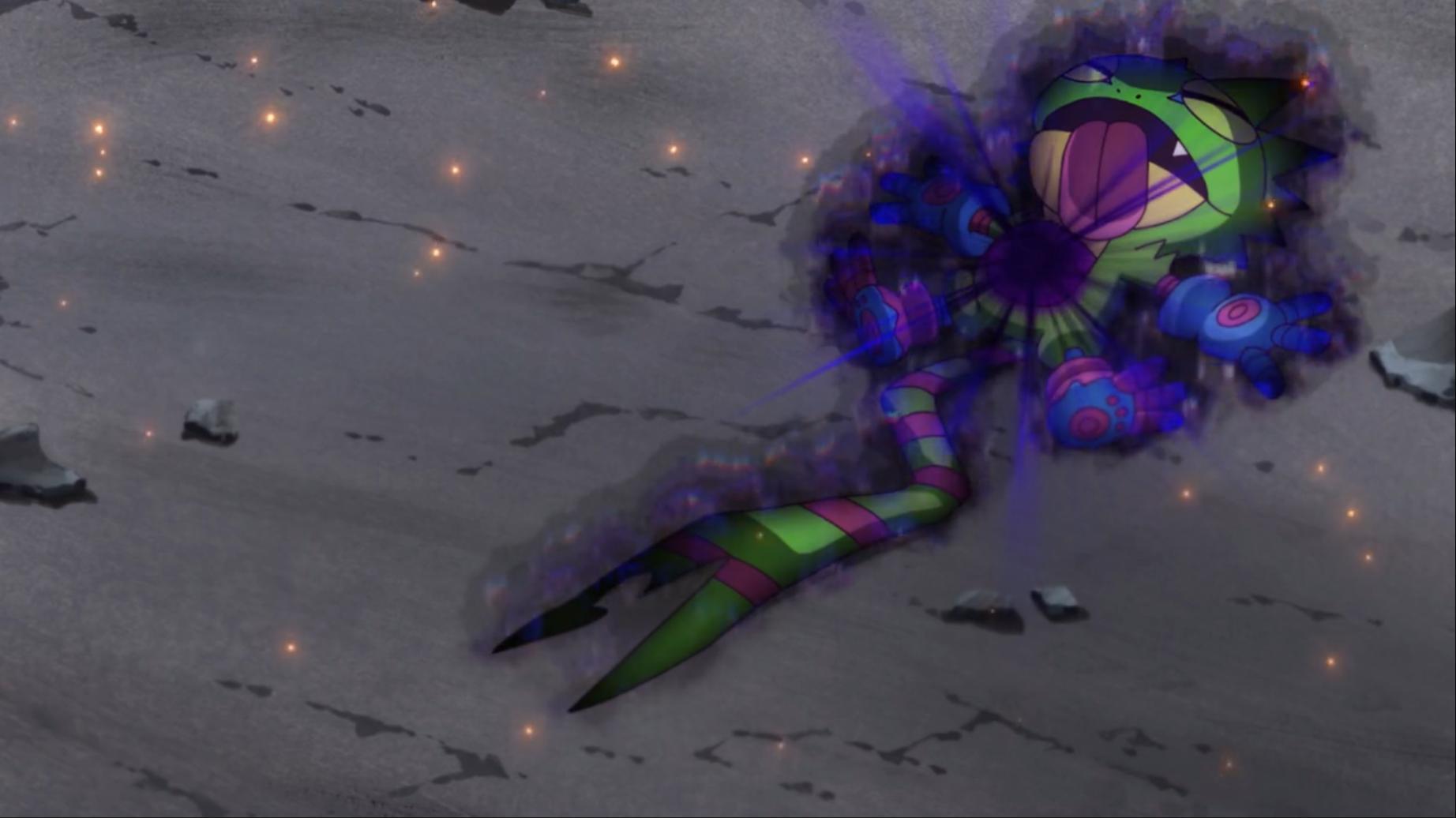 壁虎獸因此再度失控黑化差點要攻擊智郎但忍了下來轉而去反擊爛泥獸 誰知反擊未果還被爛泥獸直接吞掉