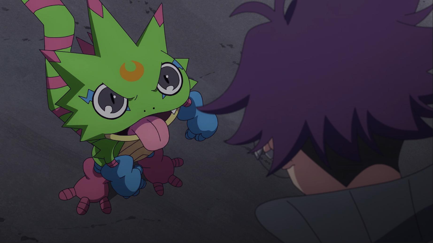 然而偶像天使手抱著的卻是壁虎獸被強制退化的幼年期呱呱獸 智郎看到壁虎獸退回到幼年期和偶像天使倒地不起相當震撼 目睹黎明團和偶像光美接近團滅 就連搭檔壁虎獸也被變回幼年期 智郎該怎麼面對呢...