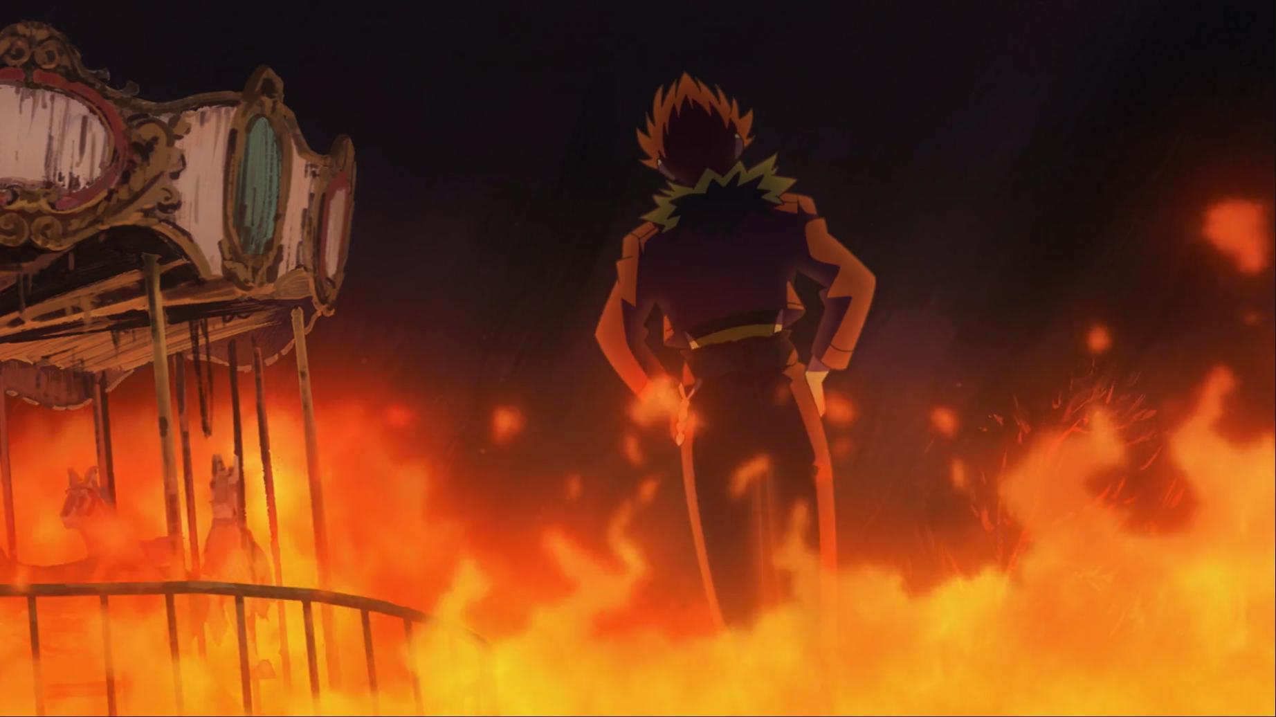 開場在位於周圍都是火焰的某座遊樂場 然而這場大火其實是五行星之一的搭檔耀獅獸的絕招引發出來...