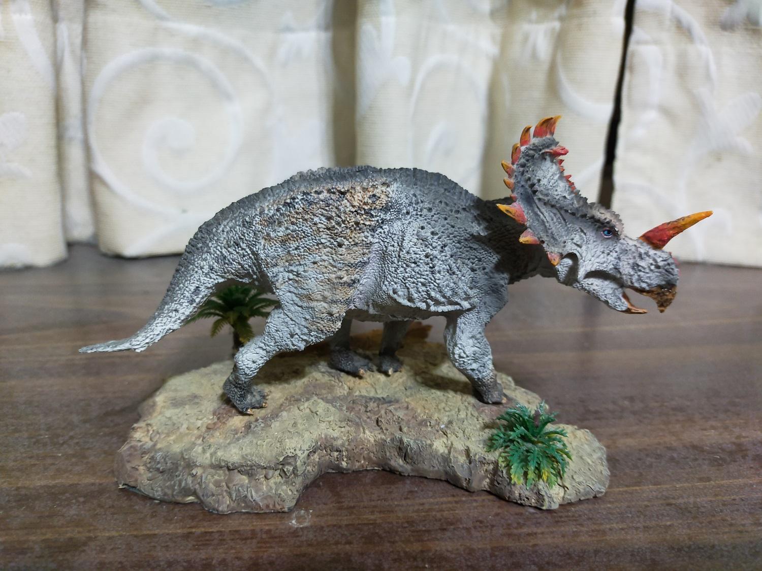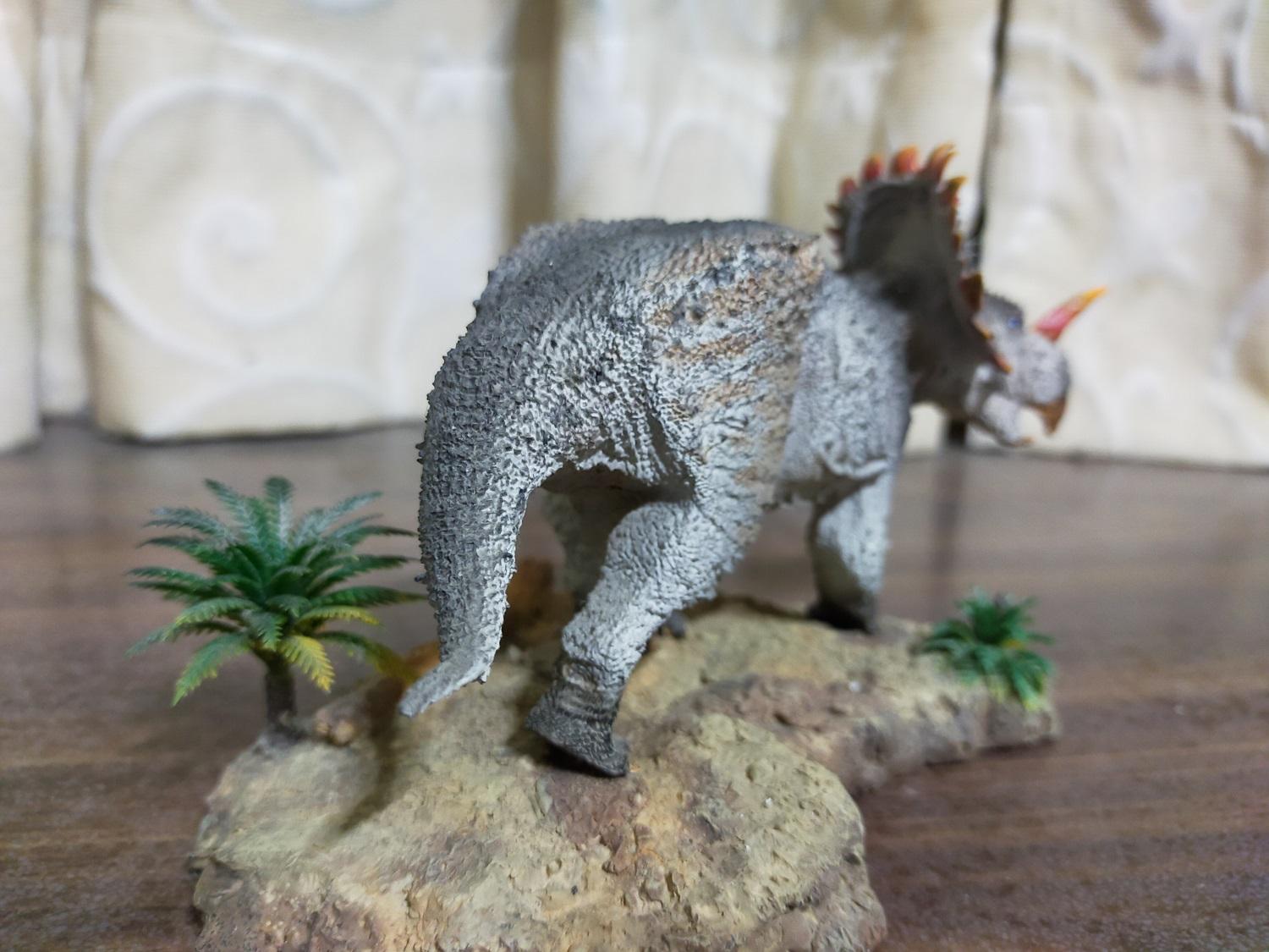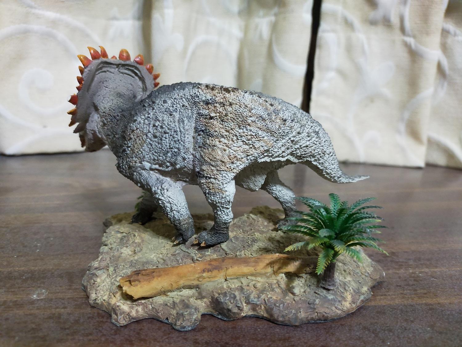 以該款全長17cm的比例來看,如果放大到原始尺寸,這隻中國角龍將會有5.9公尺長的體型,大概符合目前學術界對該物種的成年體型大約落在5~7公尺的預估值,還真是意外的剛好,沒有像巨獸龍那樣有過大的情形(笑)