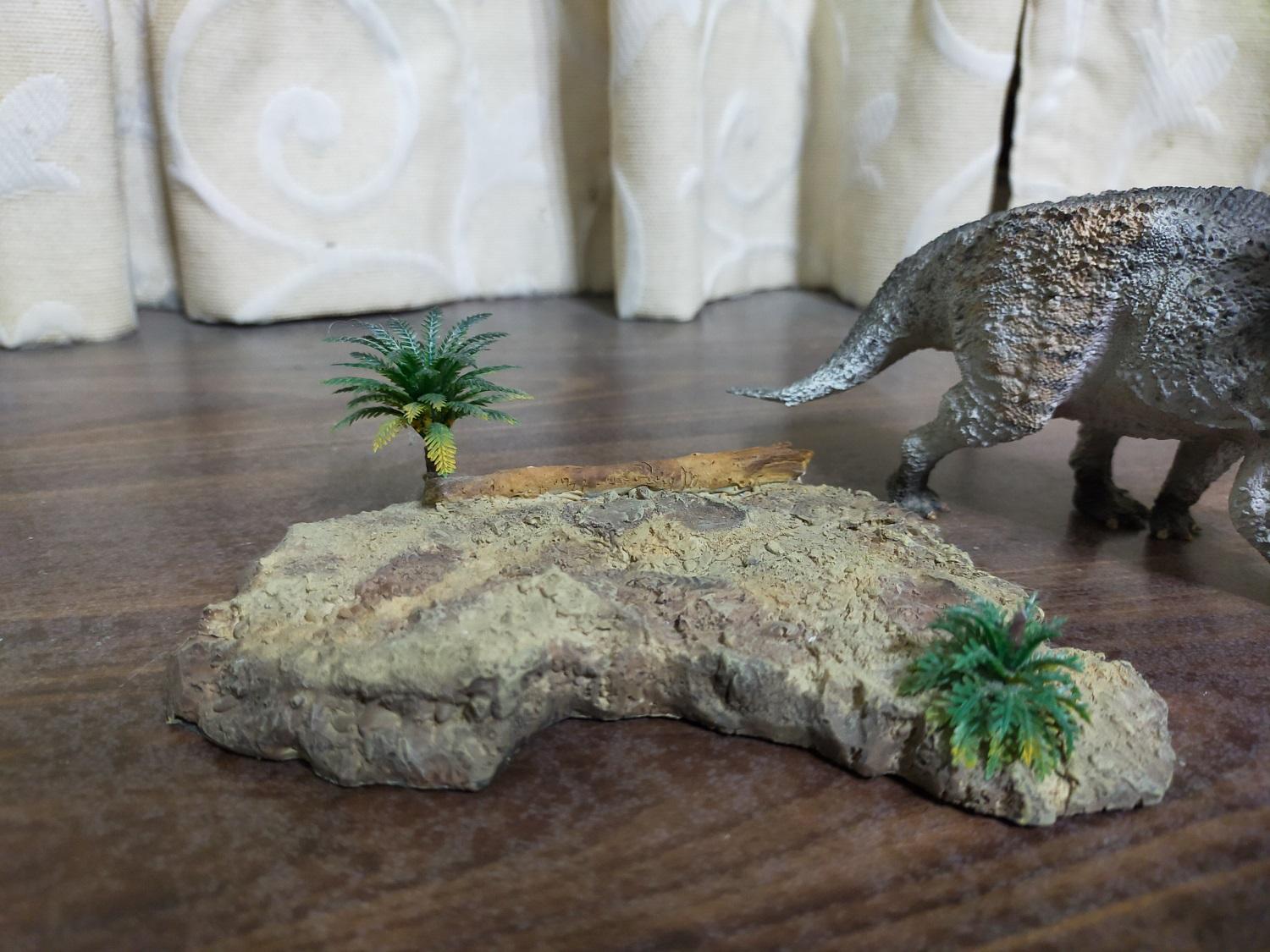 把恐龍拿離地台後的樣子。是的,與巨獸龍完全不同,泥地上並沒有凹洞,也沒有支架,只有腳印來提供確切的模型擺放位置