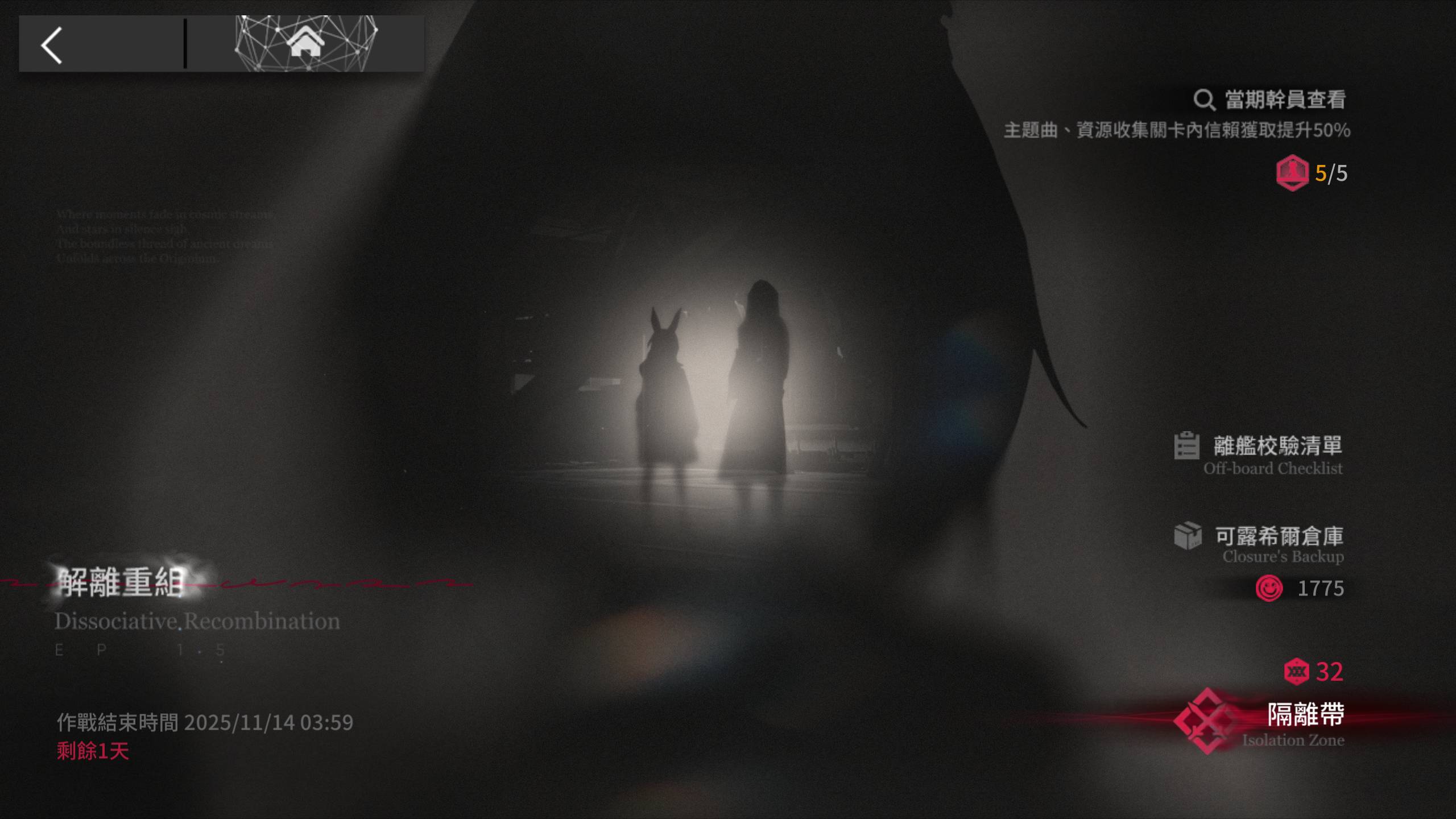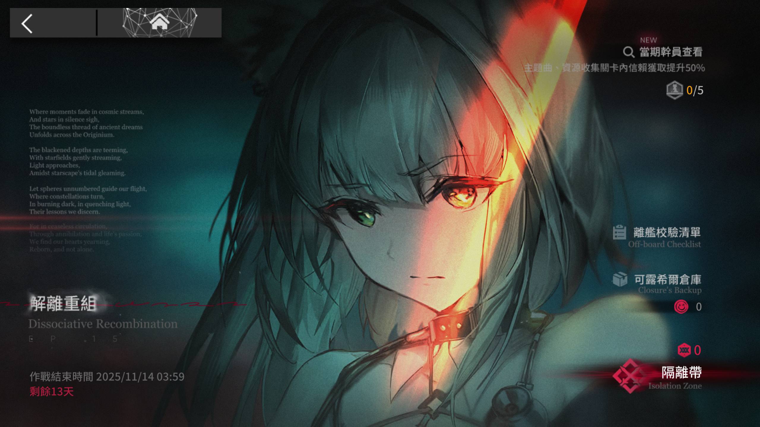 15 章開始了,解離重組的活動首頁好吸引人,雖然完全不知道發生什麼事情