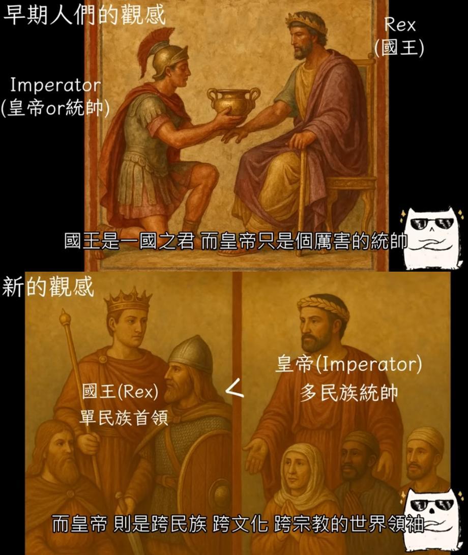 當初凱撒選最高神官(唯一終身職民選官)時,那時的羅馬什麼神都拜,也沒什麼實權。凱撒絕對無法想像祭司職與imperator跟augustus合併,搭配日後基督教強勢崛起,形成東方式政教合一皇帝,直到東羅馬滅亡。(西歐是教皇與世俗皇帝分開)