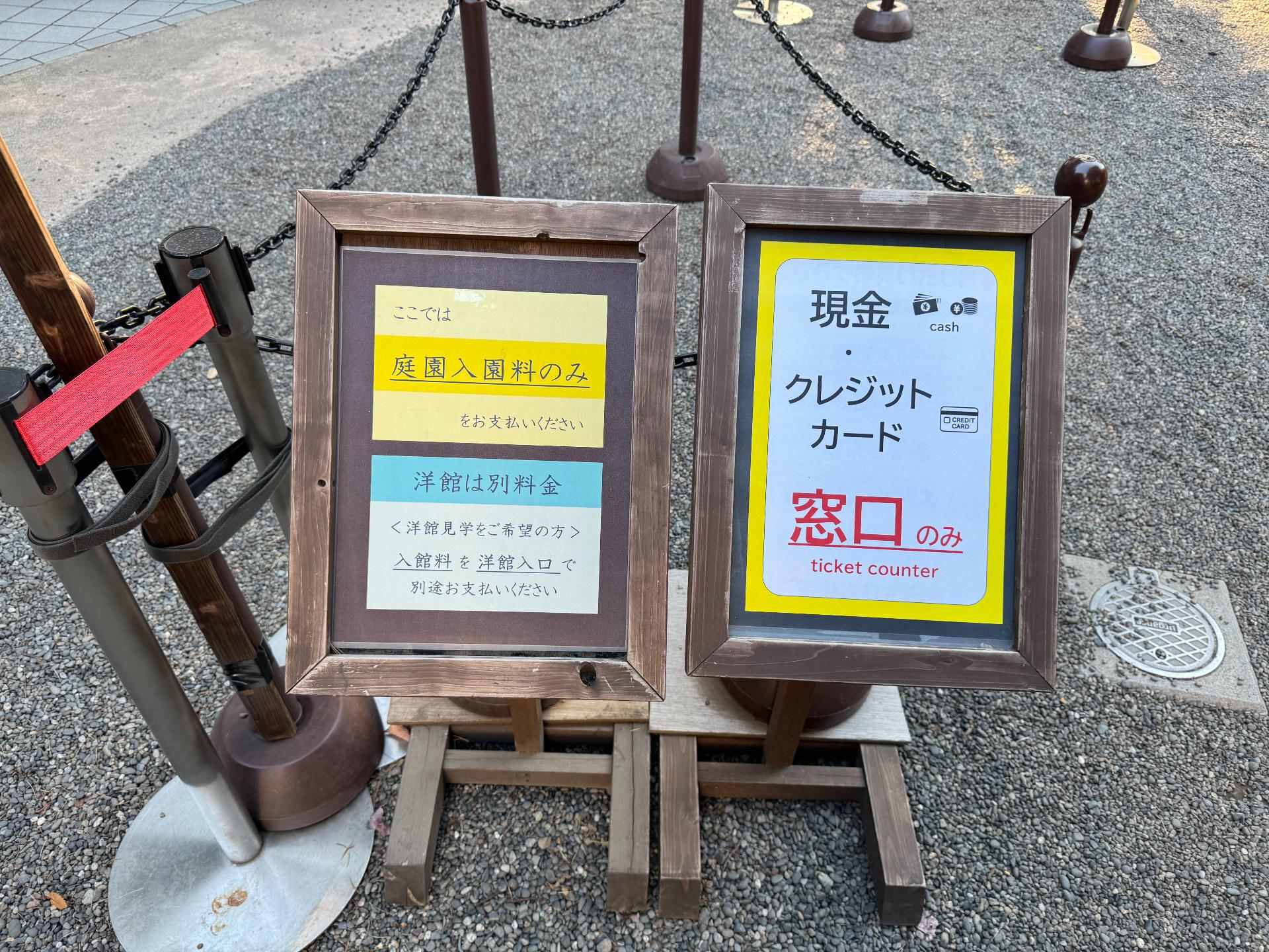門口只有販售庭園的門票;洋館(同時也是咖啡廳)則是在洋館的玄關口另外買票!