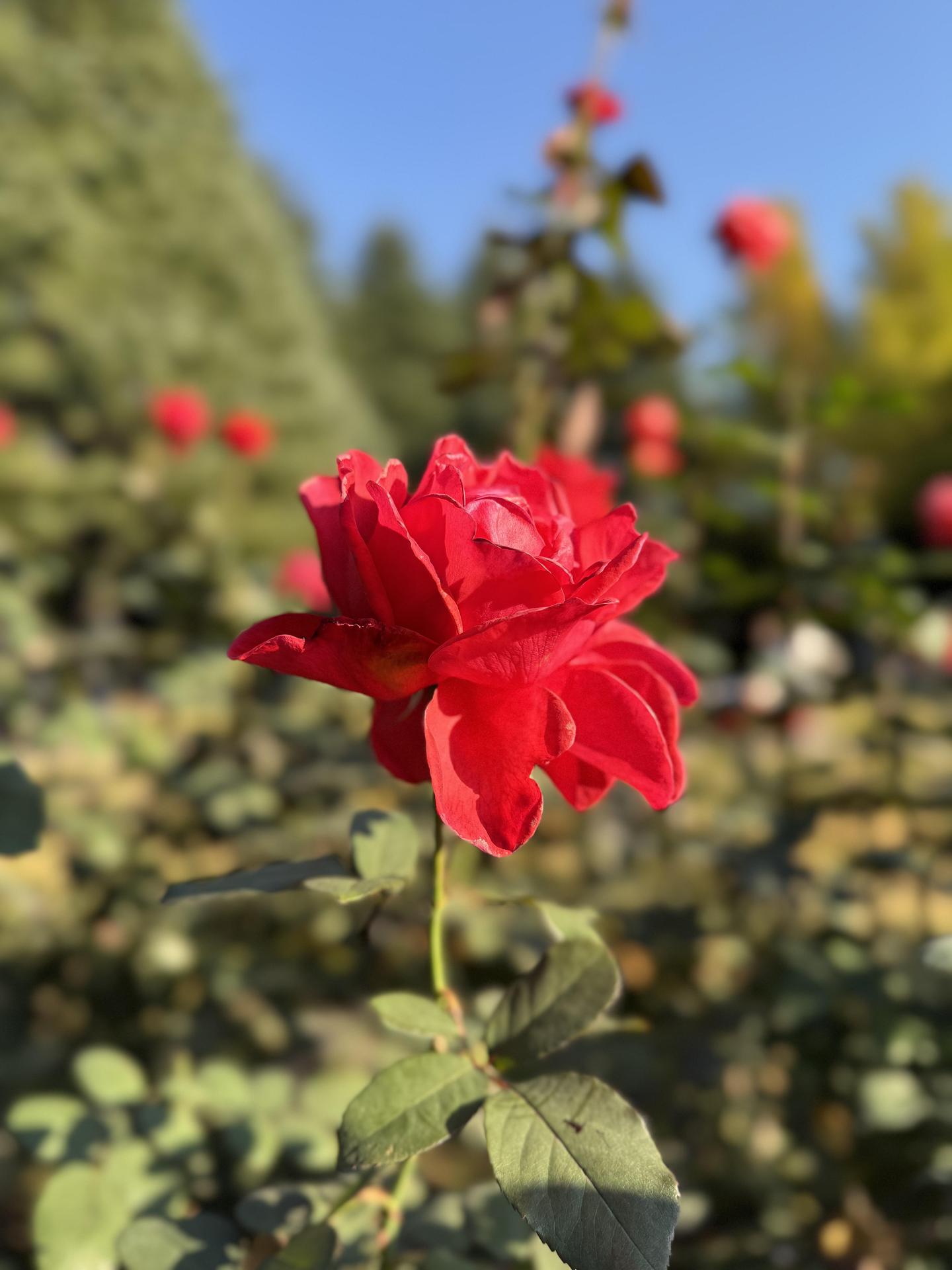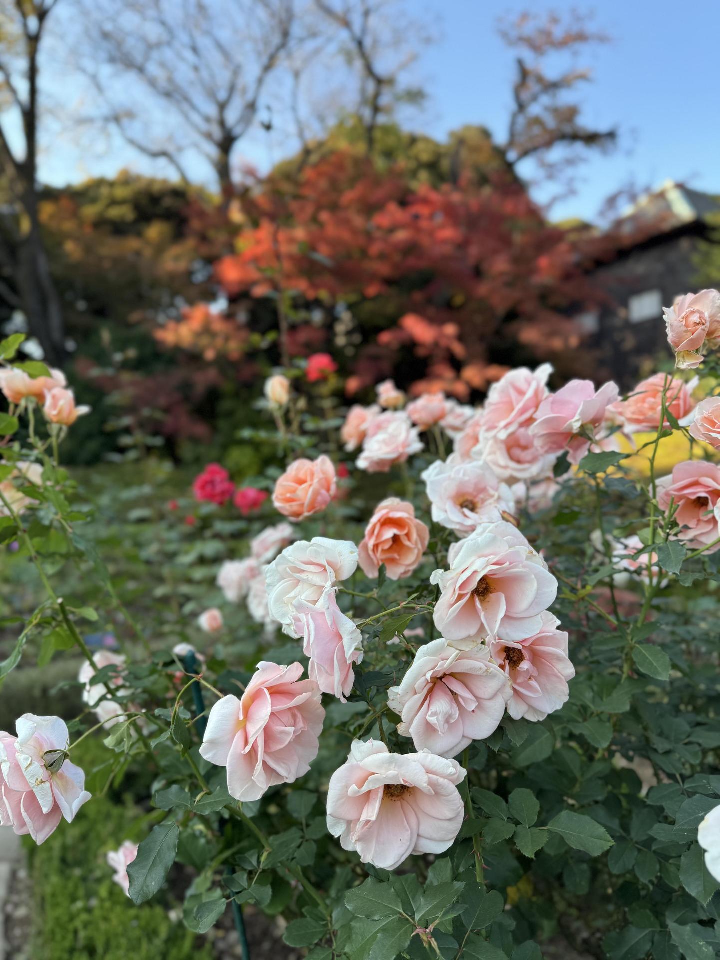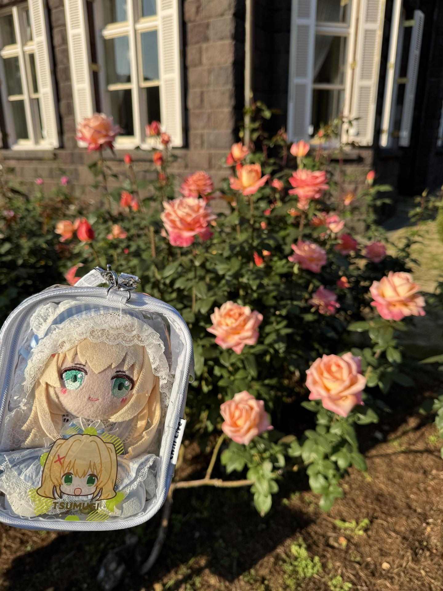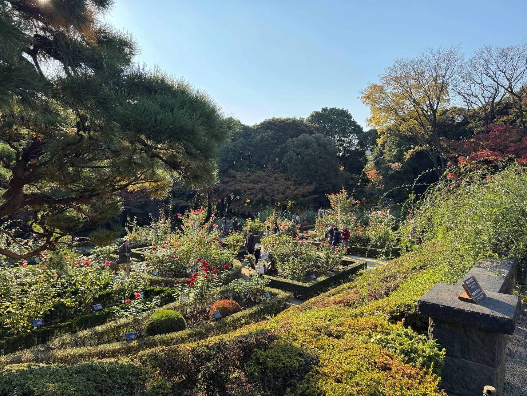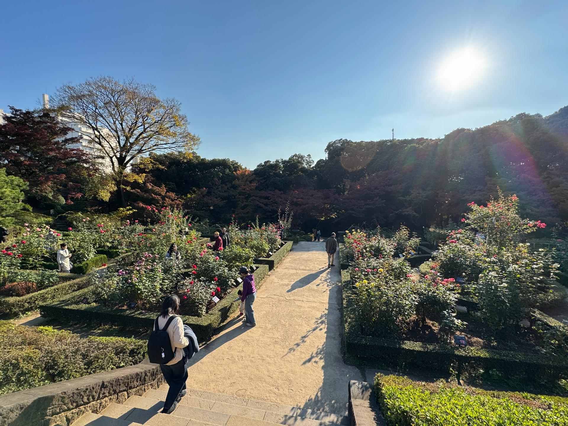 後方的バラ園真的很漂亮,是連我這種外行人也能看得出的美。
