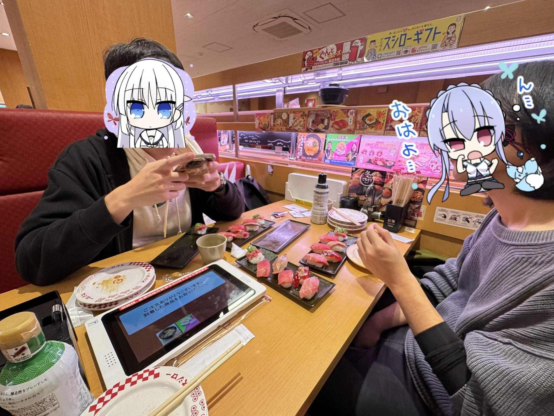 總之等待了一小會,我們也是順利入座啦~!(是說在日本吃壽司郎還是第一次呢XDD!)