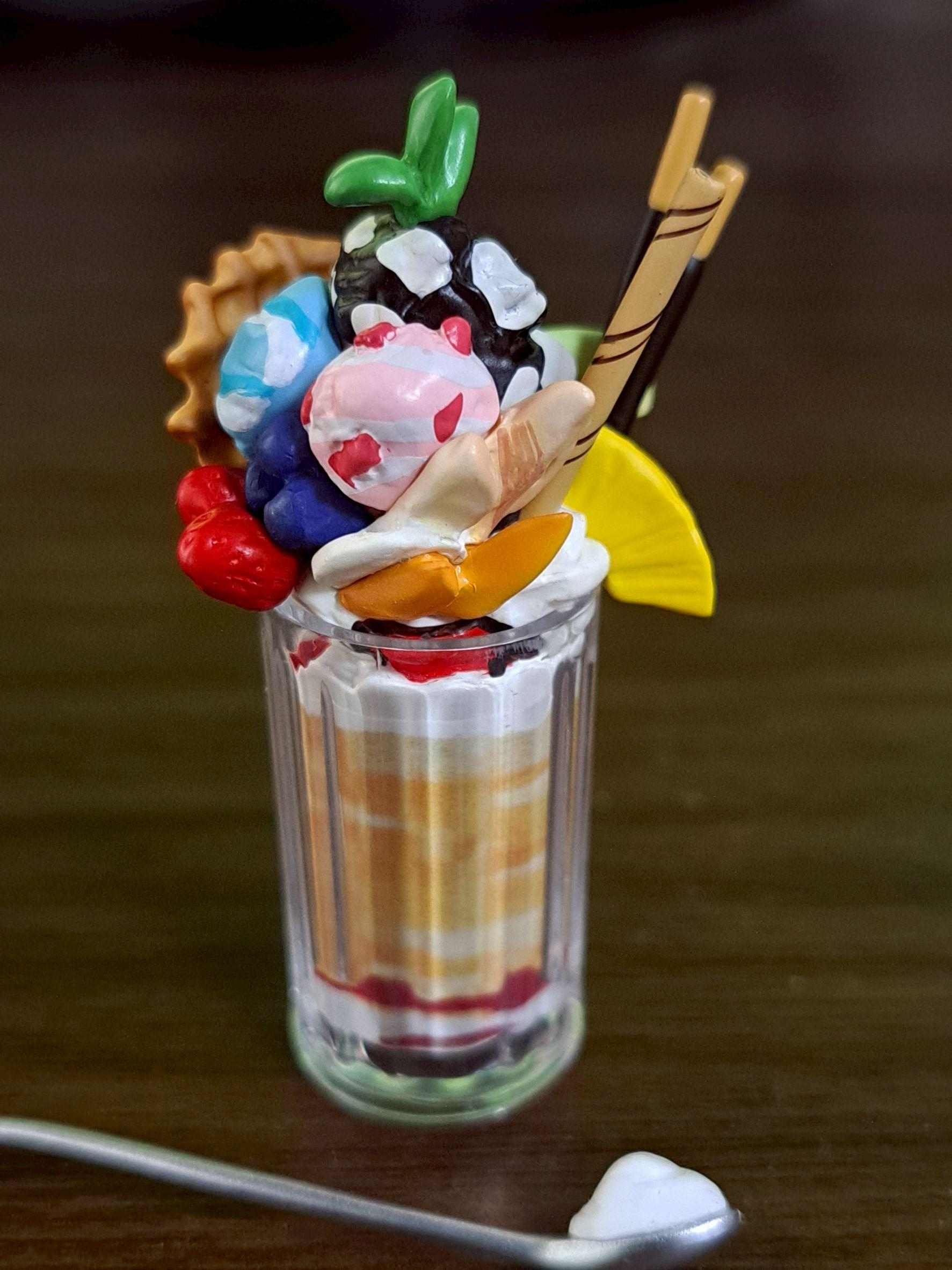 為了不傷到她的手,花了不少時間才把聖代裝上