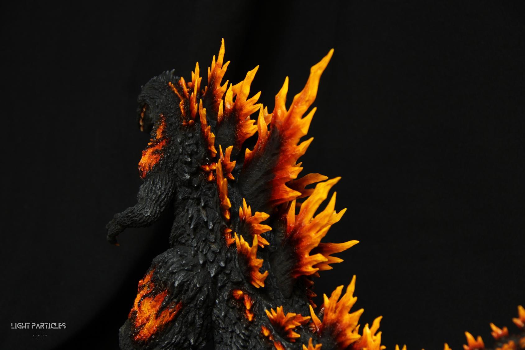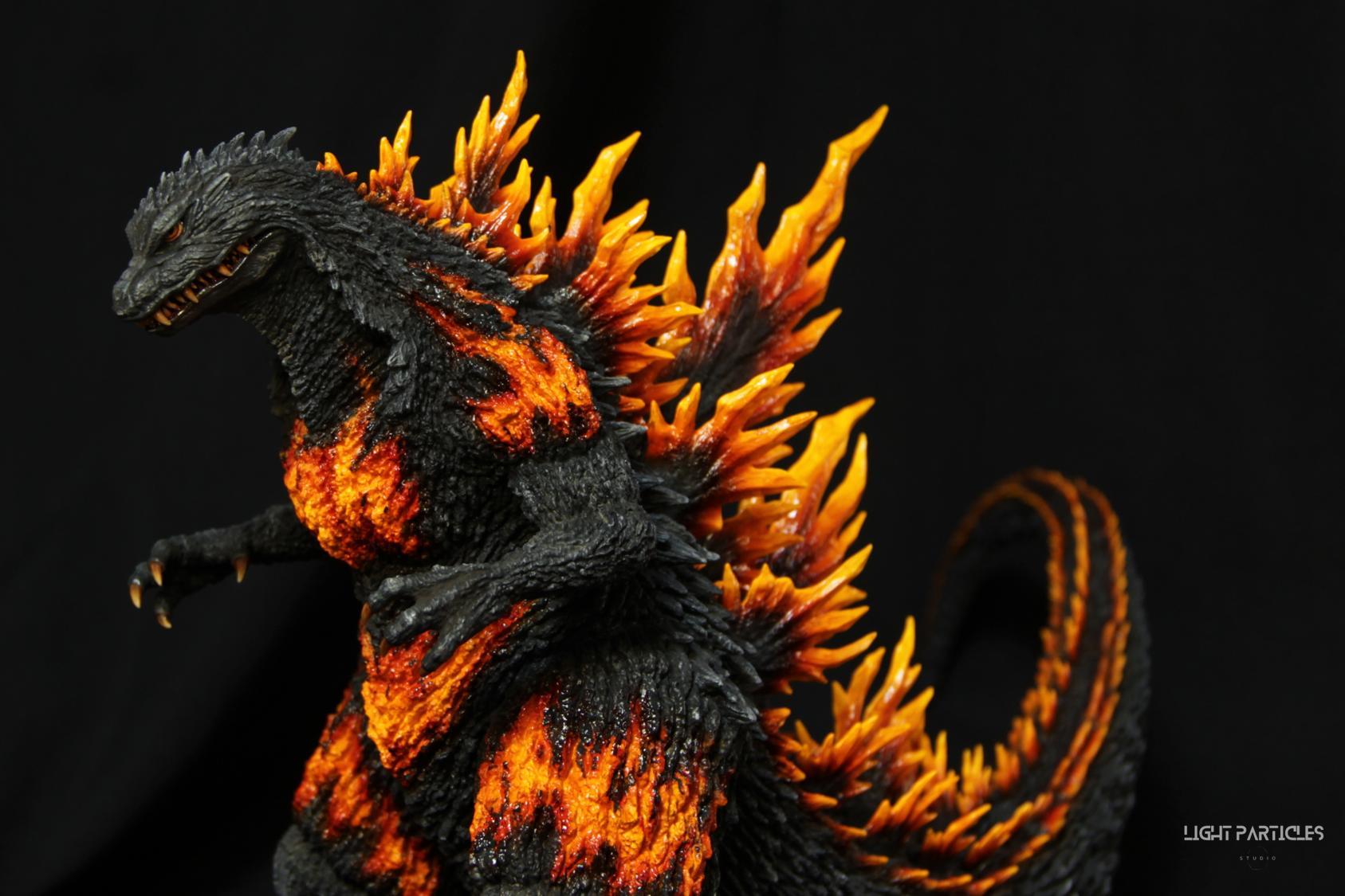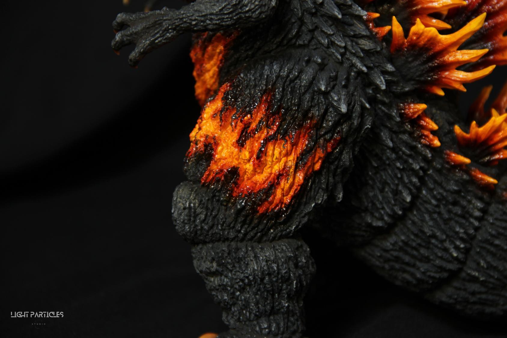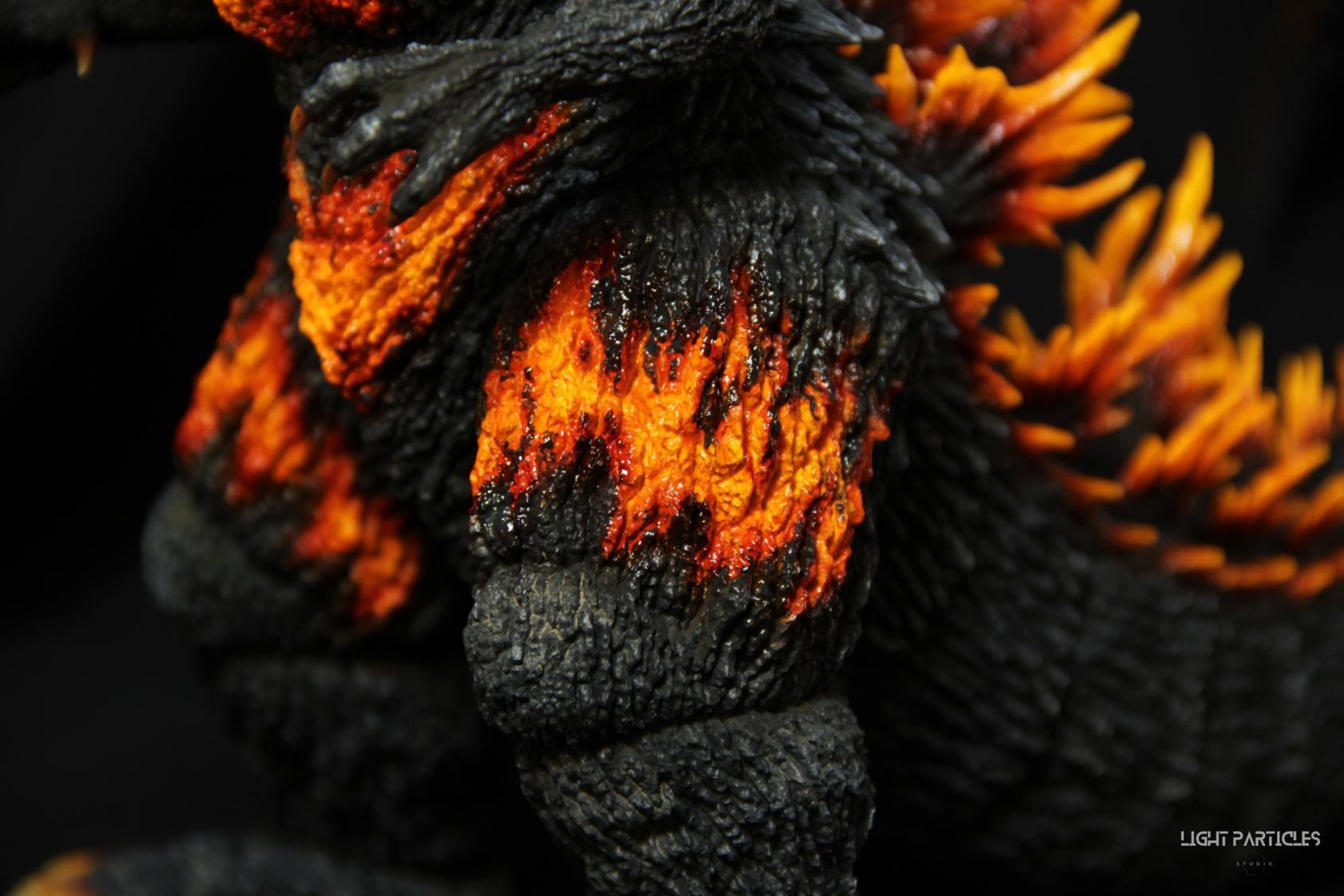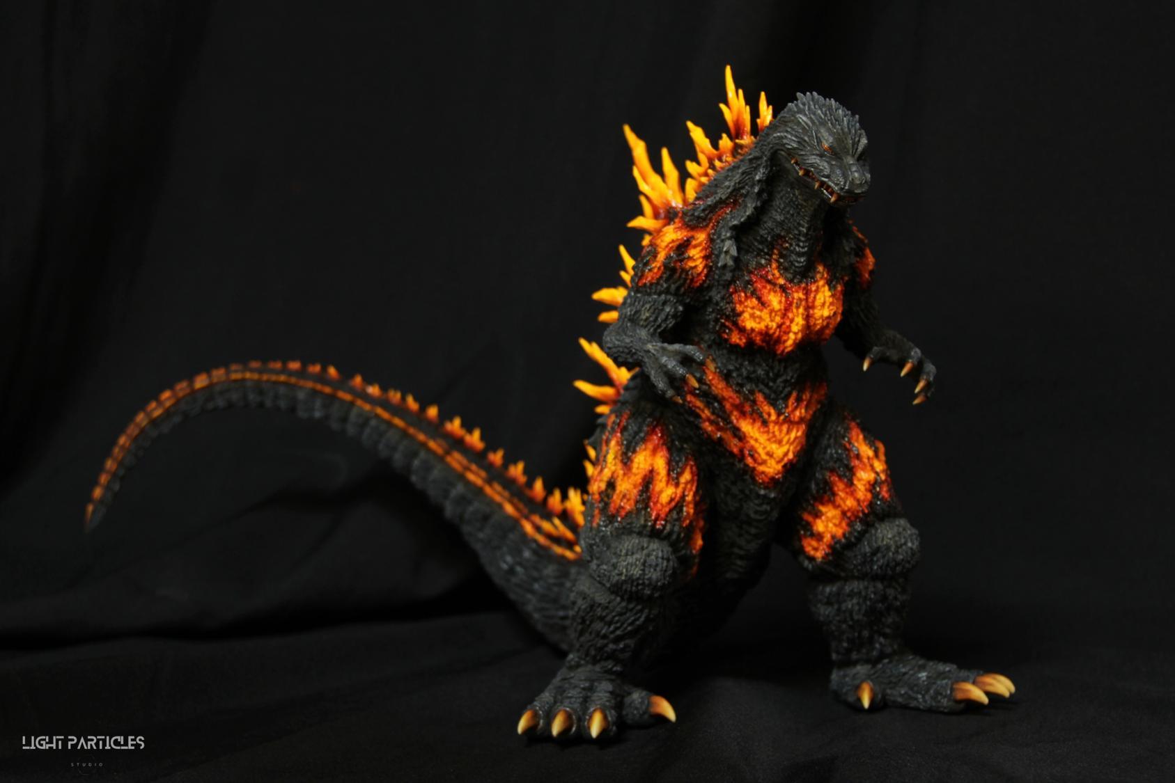上次製作千禧哥吉拉約在去年八月下旬。近期遇到一組價格漂亮的黑龍工房套件,為了可以搭配製作官方公開的千禧紅蓮哥吉拉,就買回來再利用空檔完成新宿炎上樣式。套件一如既往維持超高水準的品質,分件設計以及組裝密合度讓製作過程相對順暢。十分喜歡這組千禧哥吉拉的造型,動作設計與閉嘴造型自帶不怒自威的感覺,背鰭密集且尖銳刺手,皮膚質感立體也很密集。塗裝參考Youtube影片新宿炎上的配色,眼睛塗裝以千禧哥吉拉的樣式並改成紅蓮配色。身上的火紅紋路則因為整體造型的銳利感,繪製過程也被影響,慢慢調整成外放銳利的風格。整體火焰紋理的色彩維持高彩度塗裝,採用多層透明顏料噴塗與筆塗將層次製作出來。膚色也相較上次製作的原色千禧哥吉拉調整較深一點,經由多次乾掃與漬洗製作較多層次並增加稍微多一點塵土感。這組應該是2025年底最後一組套件製作,希望大家喜歡~