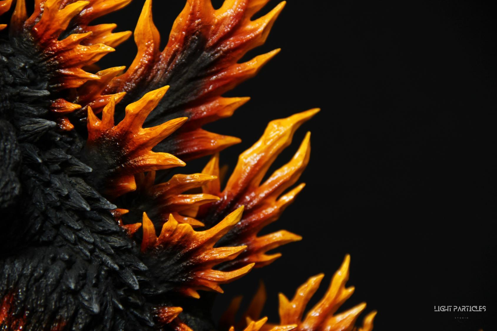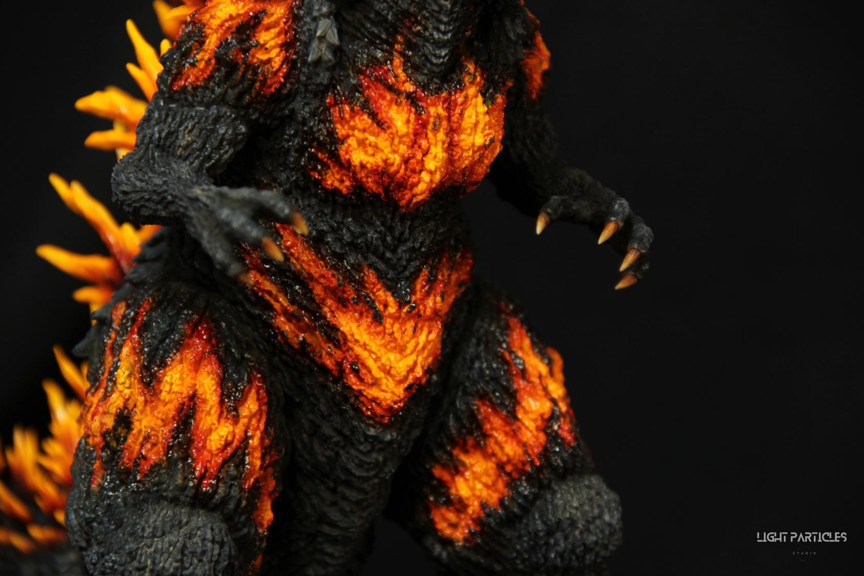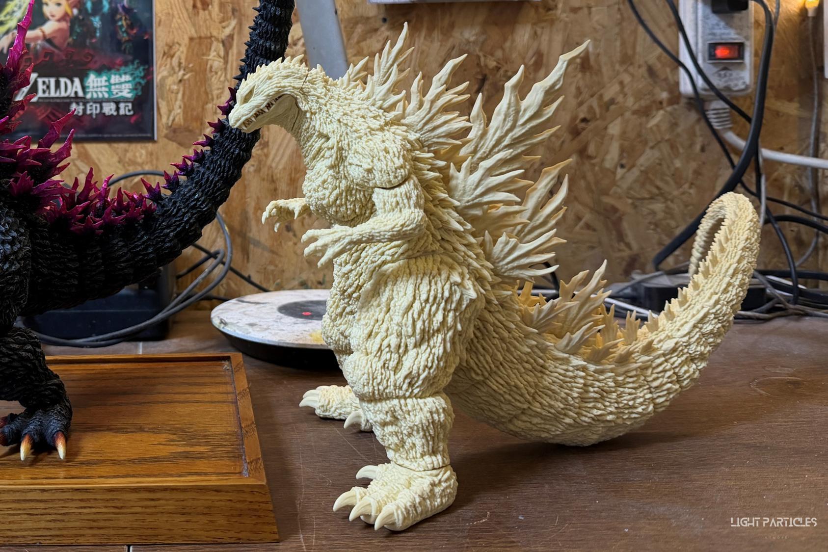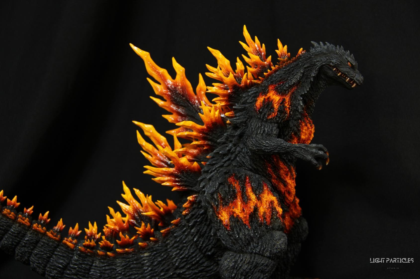 上次製作千禧哥吉拉約在去年八月下旬。近期遇到一組價格漂亮的黑龍工房套件,為了可以搭配製作官方公開的千禧紅蓮哥吉拉,就買回來再利用空檔完成新宿炎上樣式。套件一如既往維持超高水準的品質,分件設計以及組裝密合度讓製作過程相對順暢。十分喜歡這組千禧哥吉拉的造型,動作設計與閉嘴造型自帶不怒自威的感覺,背鰭密集且尖銳刺手,皮膚質感立體也很密集。塗裝參考Youtube影片新宿炎上的配色,眼睛塗裝以千禧哥吉拉的樣式並改成紅蓮配色。身上的火紅紋路則因為整體造型的銳利感,繪製過程也被影響,慢慢調整成外放銳利的風格。整體火焰紋理的色彩維持高彩度塗裝,採用多層透明顏料噴塗與筆塗將層次製作出來。膚色也相較上次製作的原色千禧哥吉拉調整較深一點,經由多次乾掃與漬洗製作較多層次並增加稍微多一點塵土感。這組應該是2025年底最後一組套件製作,希望大家喜歡~