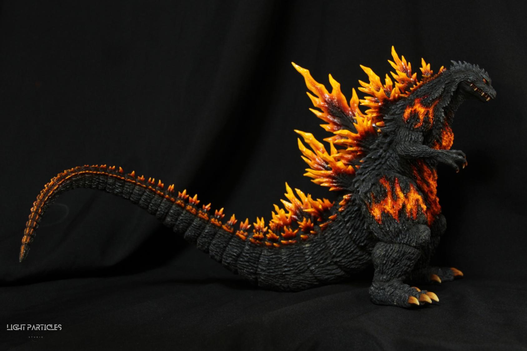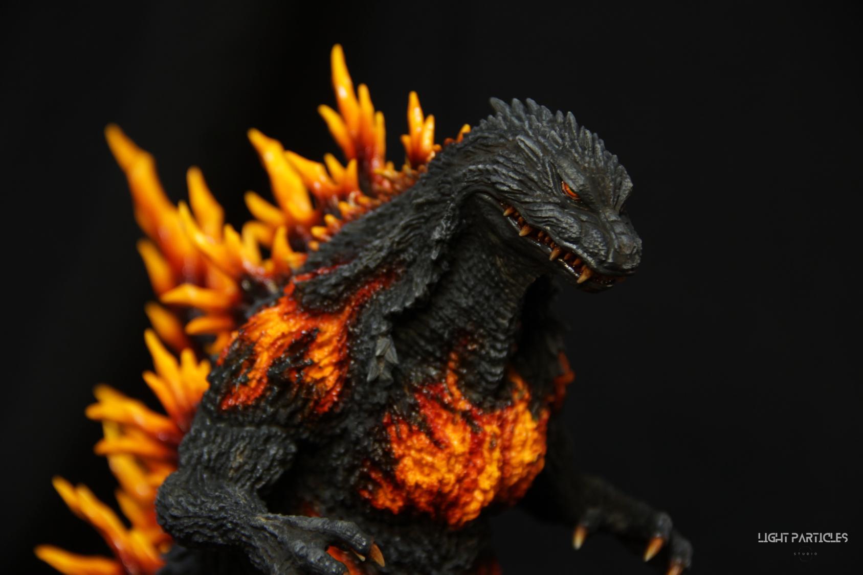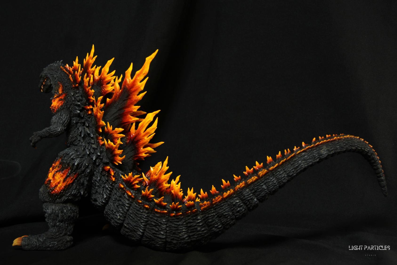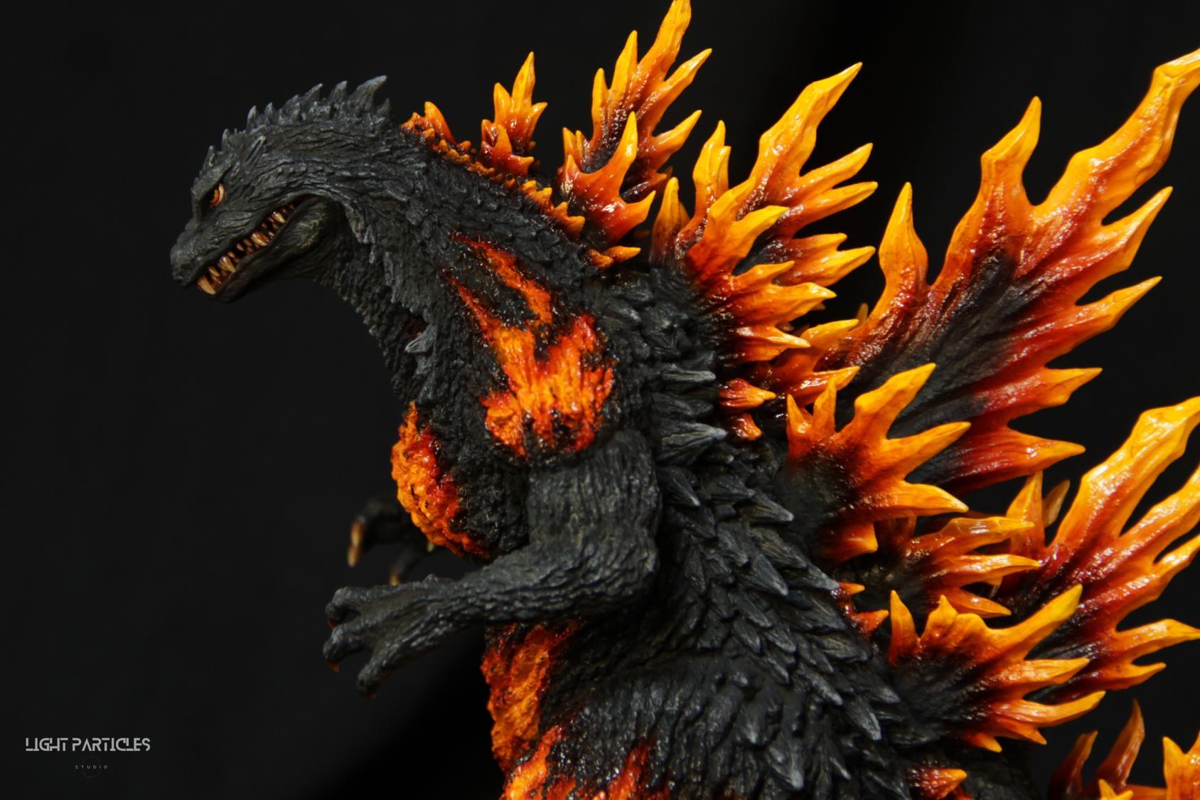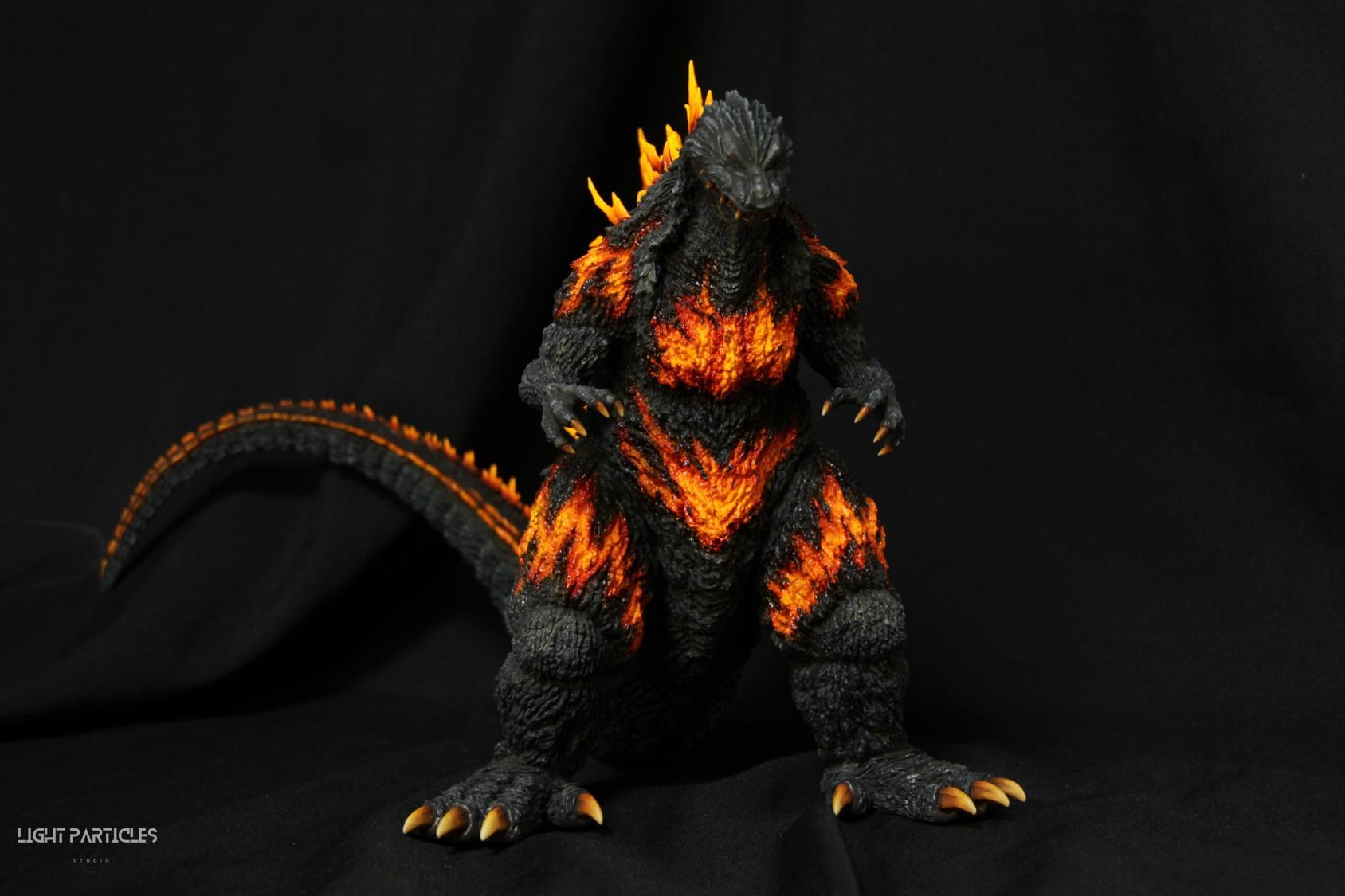上次製作千禧哥吉拉約在去年八月下旬。近期遇到一組價格漂亮的黑龍工房套件,為了可以搭配製作官方公開的千禧紅蓮哥吉拉,就買回來再利用空檔完成新宿炎上樣式。套件一如既往維持超高水準的品質,分件設計以及組裝密合度讓製作過程相對順暢。十分喜歡這組千禧哥吉拉的造型,動作設計與閉嘴造型自帶不怒自威的感覺,背鰭密集且尖銳刺手,皮膚質感立體也很密集。塗裝參考Youtube影片新宿炎上的配色,眼睛塗裝以千禧哥吉拉的樣式並改成紅蓮配色。身上的火紅紋路則因為整體造型的銳利感,繪製過程也被影響,慢慢調整成外放銳利的風格。整體火焰紋理的色彩維持高彩度塗裝,採用多層透明顏料噴塗與筆塗將層次製作出來。膚色也相較上次製作的原色千禧哥吉拉調整較深一點,經由多次乾掃與漬洗製作較多層次並增加稍微多一點塵土感。這組應該是2025年底最後一組套件製作,希望大家喜歡~