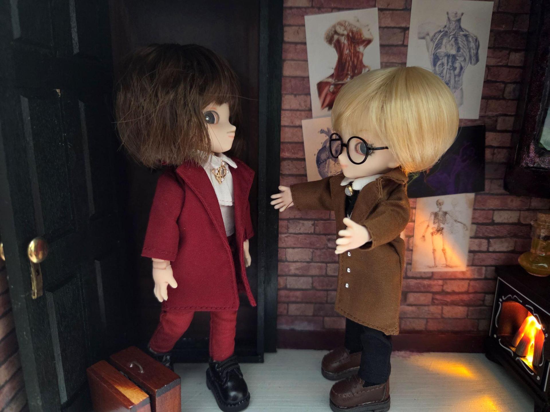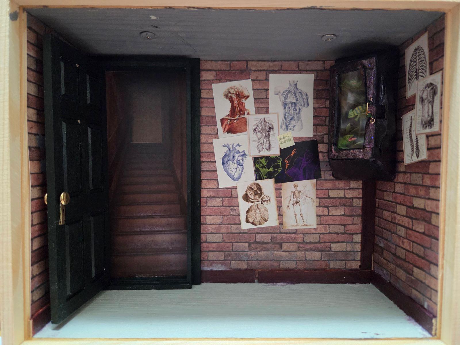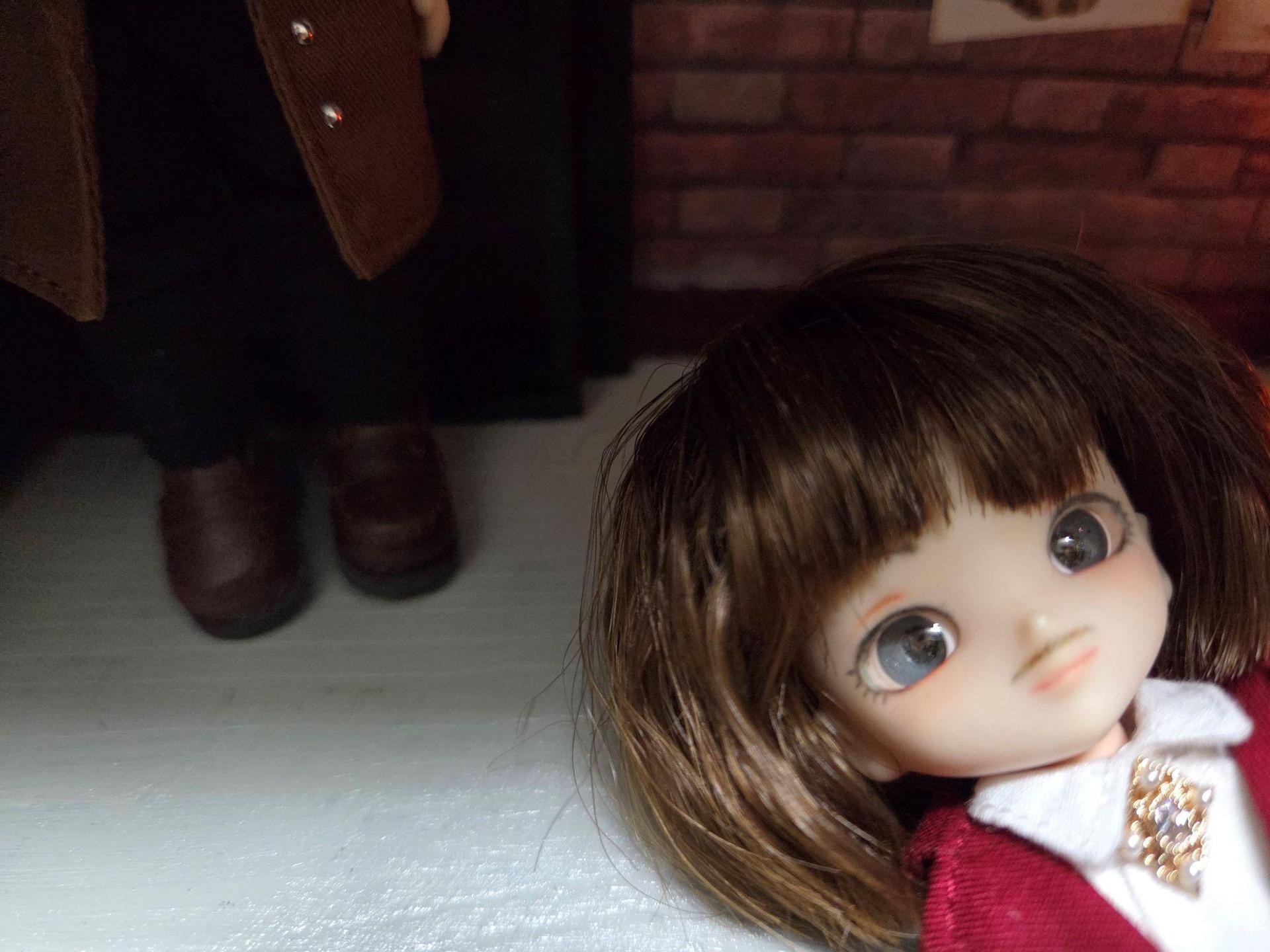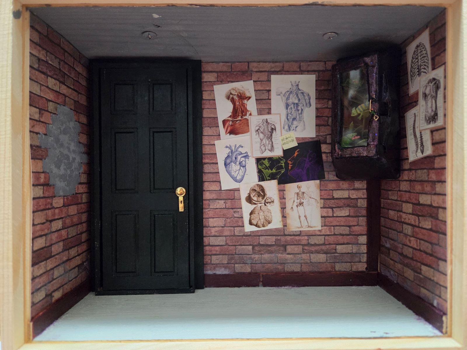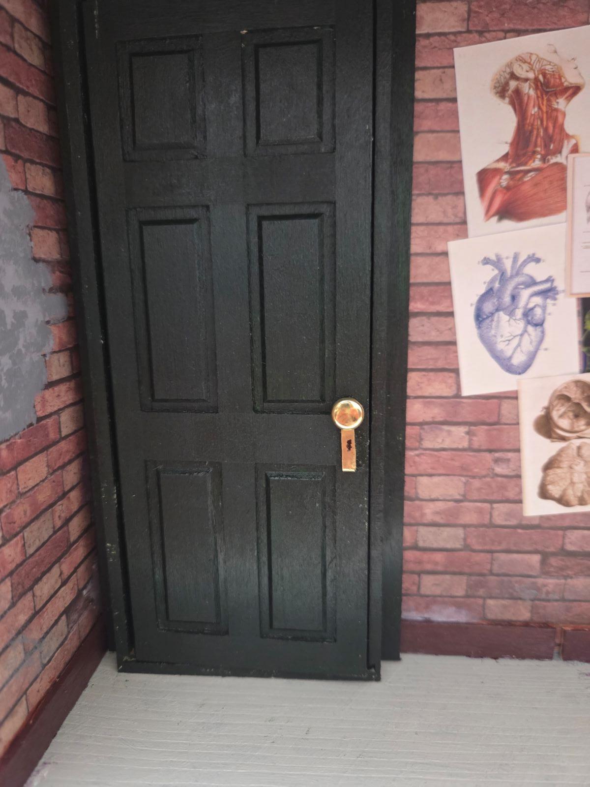 門把是用固定紙張的雙腳釘/魚尾釘摺出來的,然後再用麥克筆塗個黑點充當鑰匙孔,這是之前找YouTube袖珍屋影片看到迷你門把時腦中突然浮現的靈感,想說這東東看起來不就像縮小的門把嗎XD