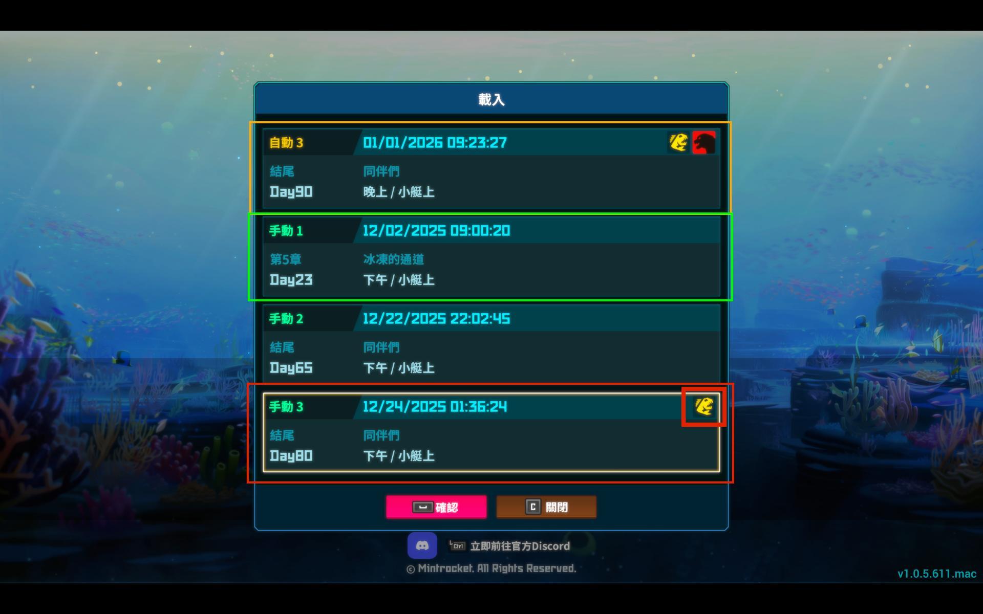存檔點右上角有出現黃色怪魚icon代表有載入到