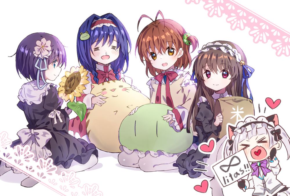 左到右分別是露西亞(Rewrite)、名雪(Kanon),渚(CLANNAD)、美凪(AIR)、千惠(緋染)