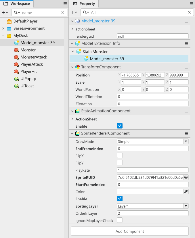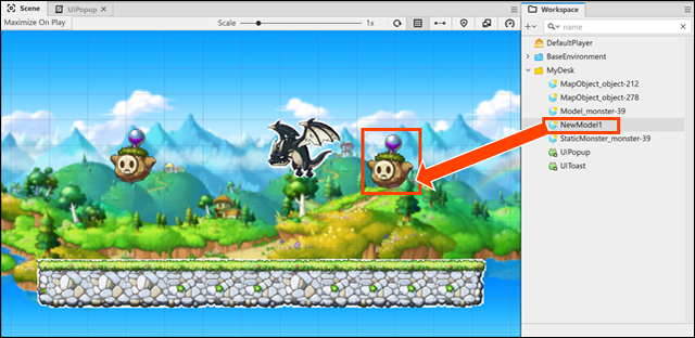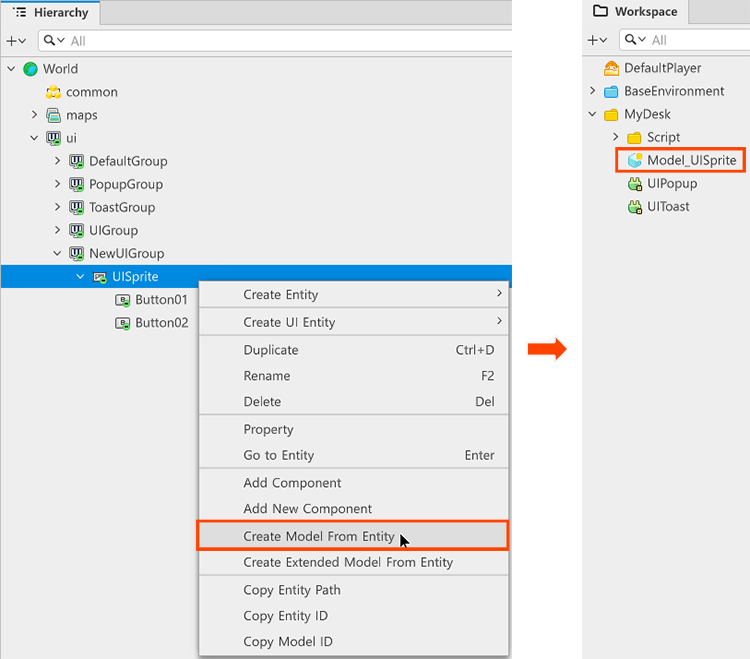 從UISprite裡點選Creat Model From Entity來建立模型,會建立在Workspace - MyDesk裡。