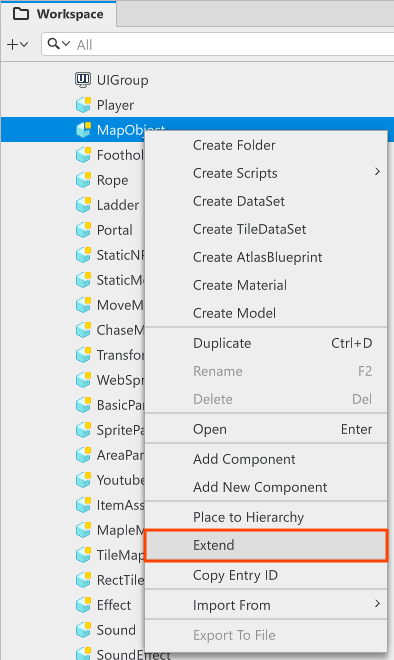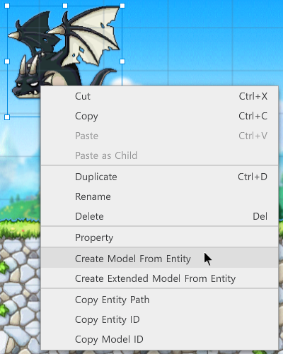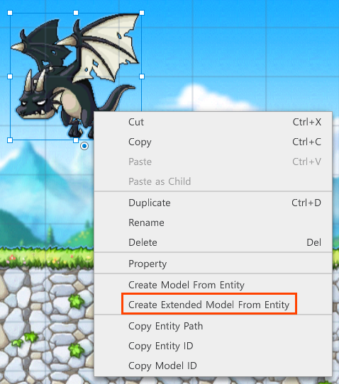 你也可以從Scene中的實體繼承,對實體的右鍵選單裡點選Creat Extended Model From Entity。