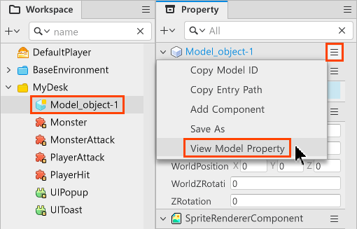 1.選擇一個你要修改的模型,在模型屬性點選右上角的漢堡選單≡2.在菜單裡點選View Model Property切成模型屬性編輯模式