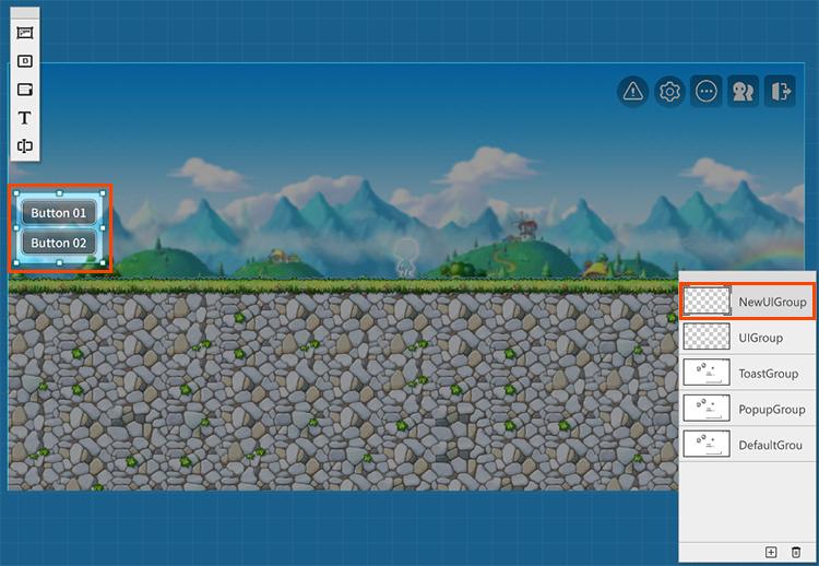 你可以從UI上的實體建立一個模型。舉例來說,我們想將NewUIGroup裡的Button01、Button02做成模型。