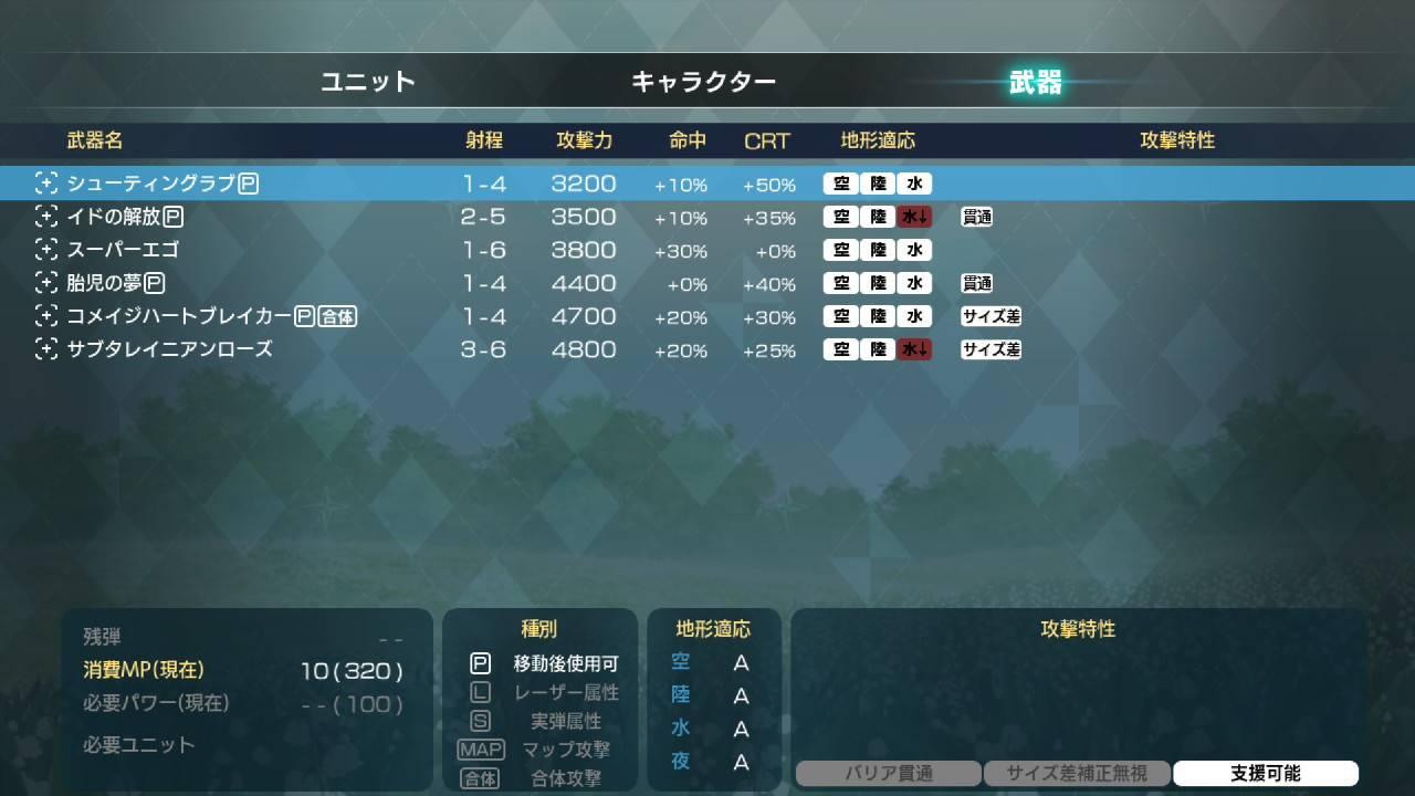 センスオブゼロ:當我方回合開始時,隨機對自身發動精神指令(如是團隊型的精神指令則包含隊友,例如努力之類的)。,地圖上擁有該指令的同伴越多,則機率越大。有一定機率強化自身隊伍的技能,除了手加減外都有一定的強化。但使用上無法自己操控,要骰到自己想要的精神必須一直Save/Load。