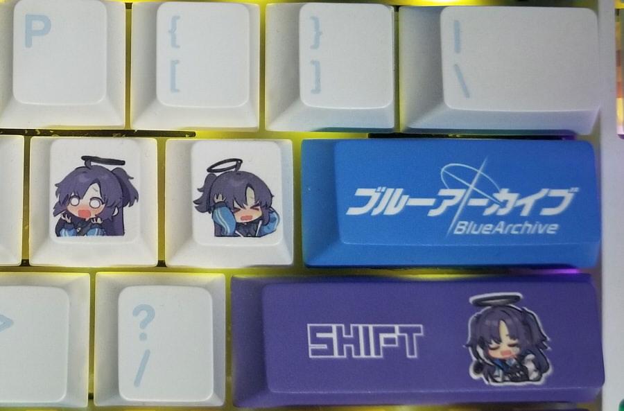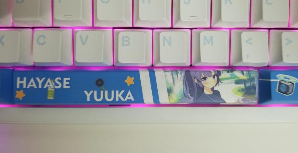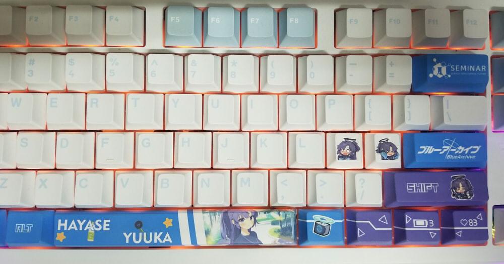 鍵帽的部分我只有換了一些,其它還是保留原本的天藍色系鍵帽,優香的鍵帽以藍色為主搭配少許的紫色,跟原本的鍵帽混搭起來也蠻好看的。