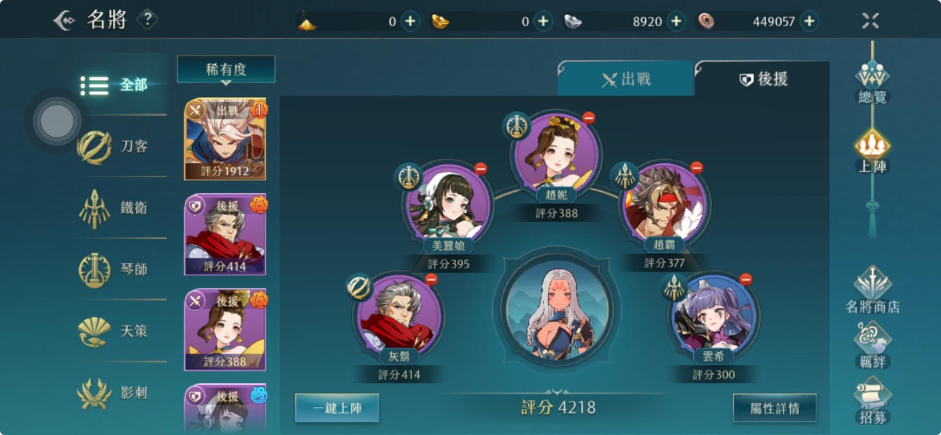 每位名將皆有其明確的角色定位,如物理、法術、輸出、輔助、控場等類型,隨著名將羈絆等級提升,可解鎖對應的專屬技能效果,玩家可依自身戰鬥需求,調整出戰及後援名將搭配,除了追求戰力外更使整體陣容配置更具變化及策略性。