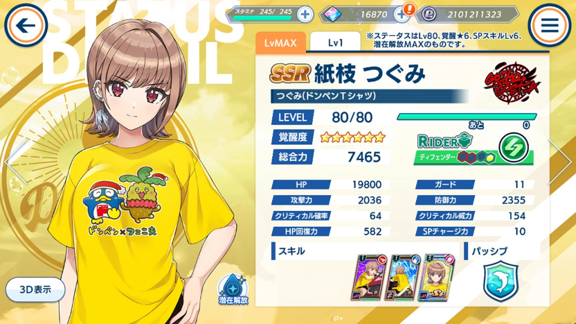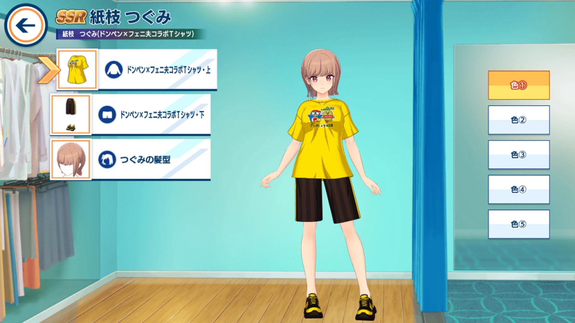 透過活動限定商店可以獲得聯名海豚 SSR 紙枝繼未(唐企鵝×菲尼夫聯名 T-shirt) 紙枝つぐみ(ドンペン×フェニ夫コラボ T シャツ) 。