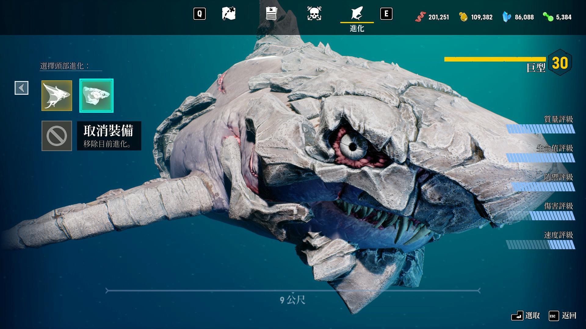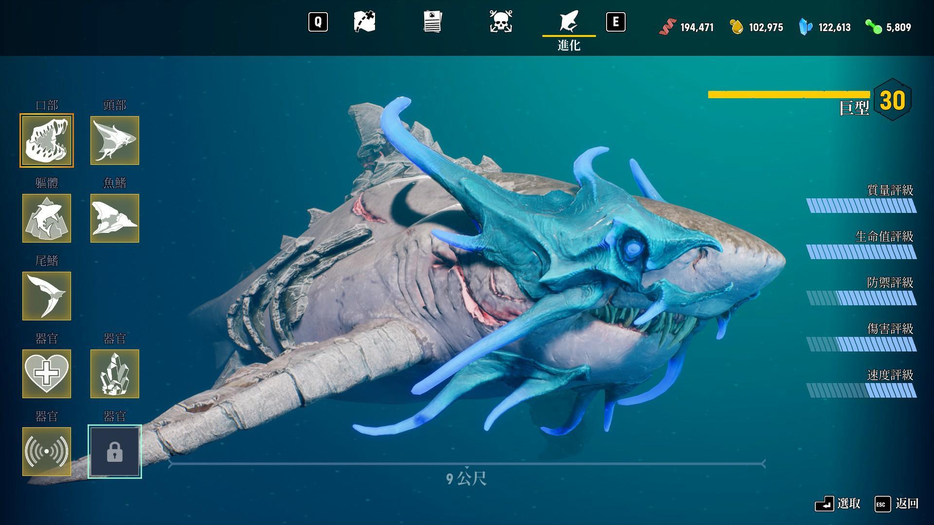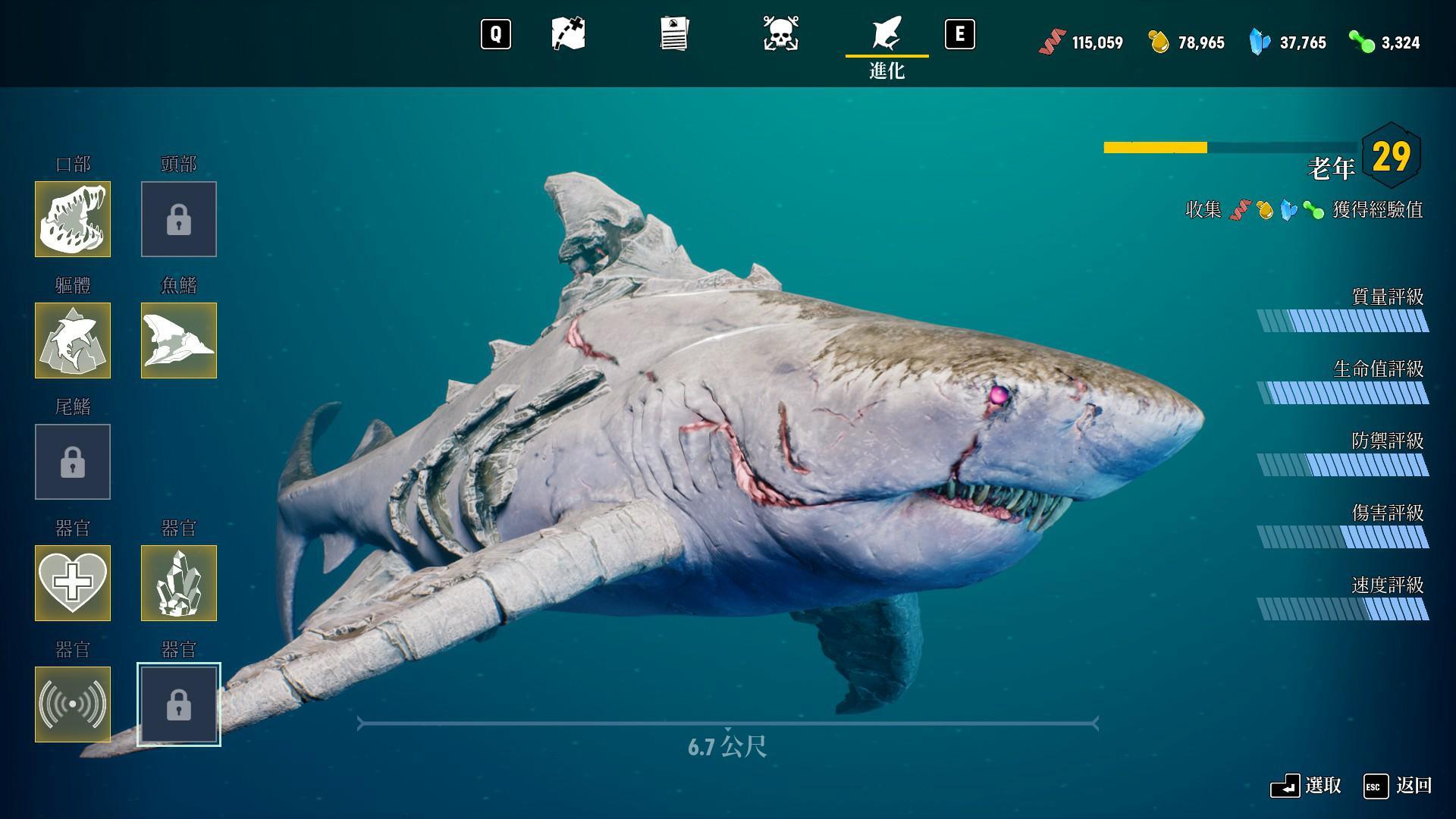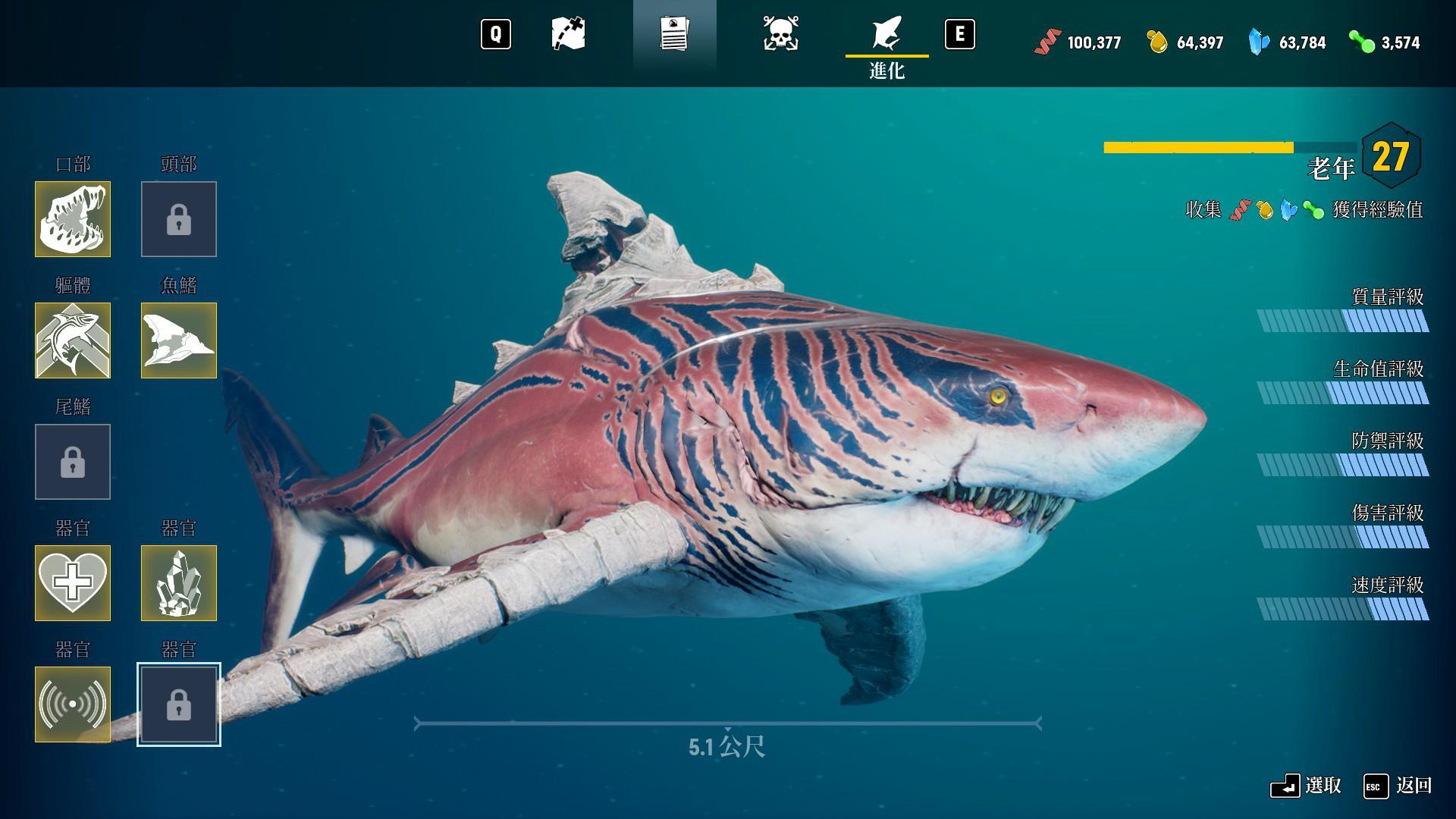 升級後會增加身體各項數值,讓玩家操作的鯊魚角色越來越強大