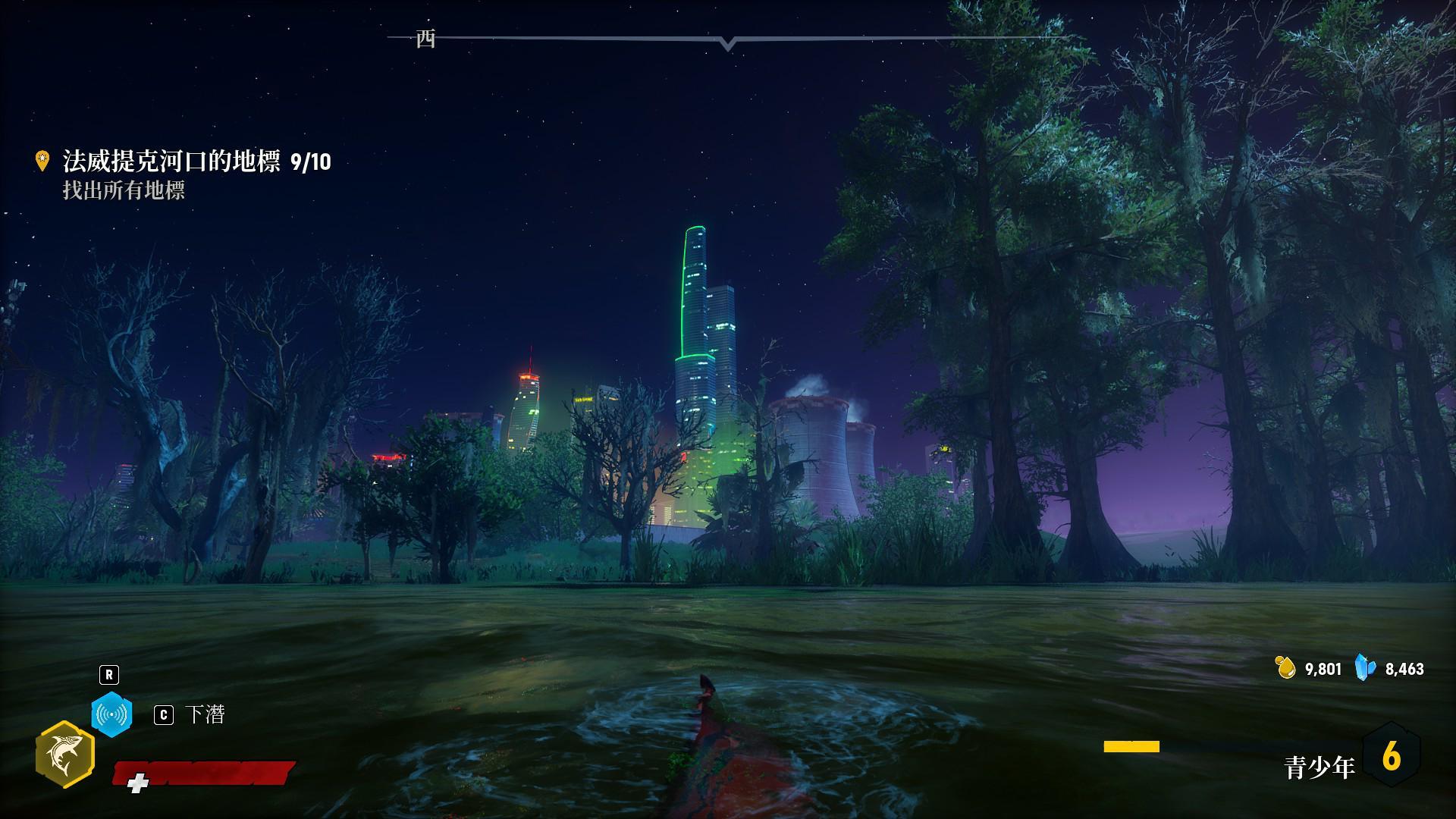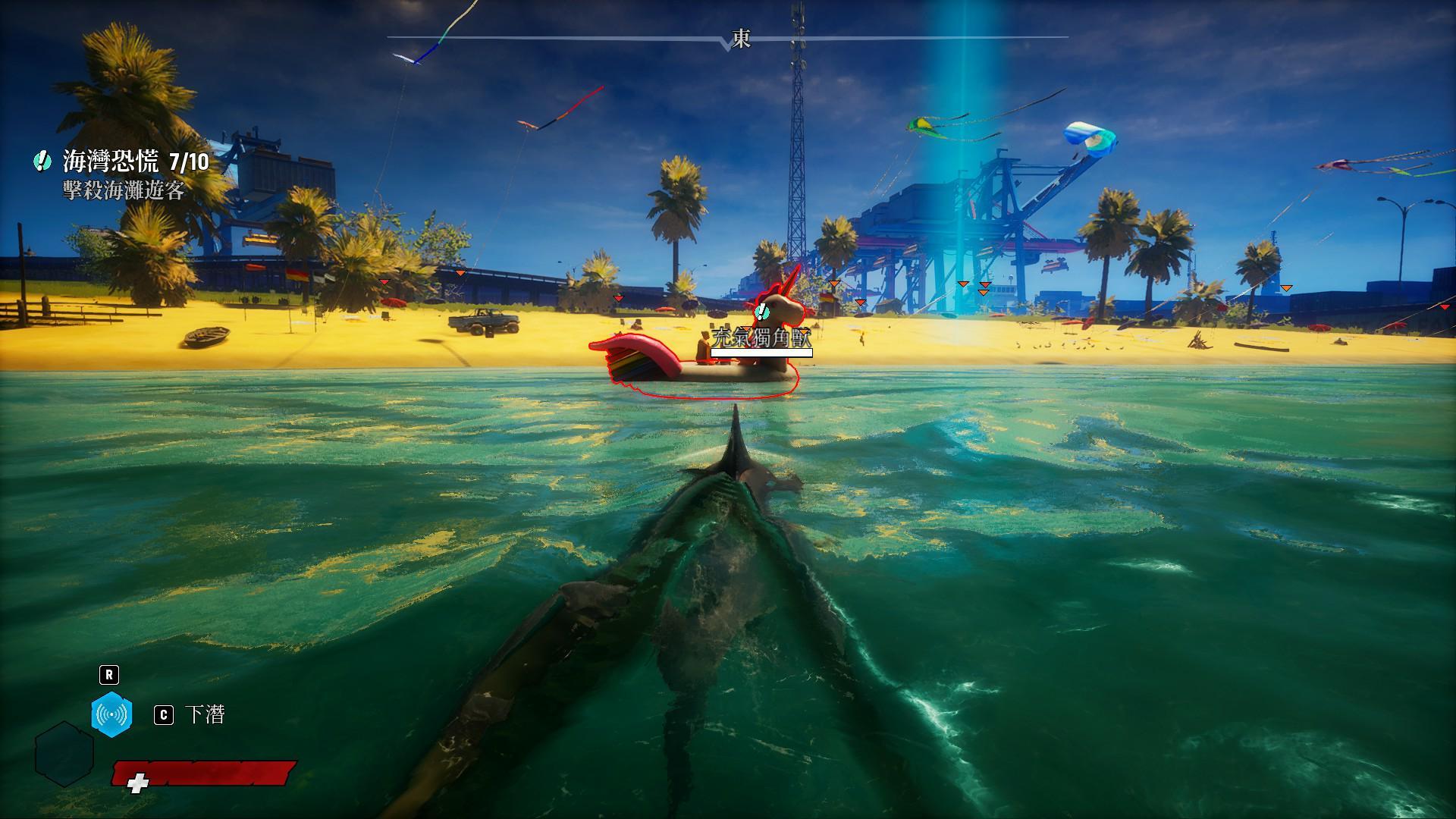 讓魚鰭冒出水面、貼平水面按加速會進入高速衝刺模式