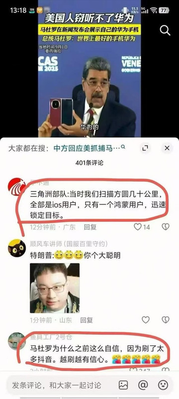 馬杜羅拿華為手機的圖 被華為舉報了