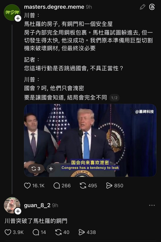 川普突破了馬杜羅的鋼門~ 笑死wwww