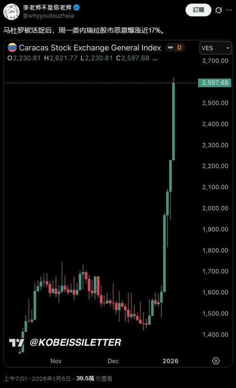 馬杜羅被抓 委內瑞拉股市暴衝