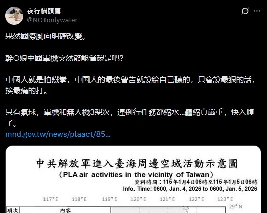 美國閃電戰後中國擾台就剩每天3架次了