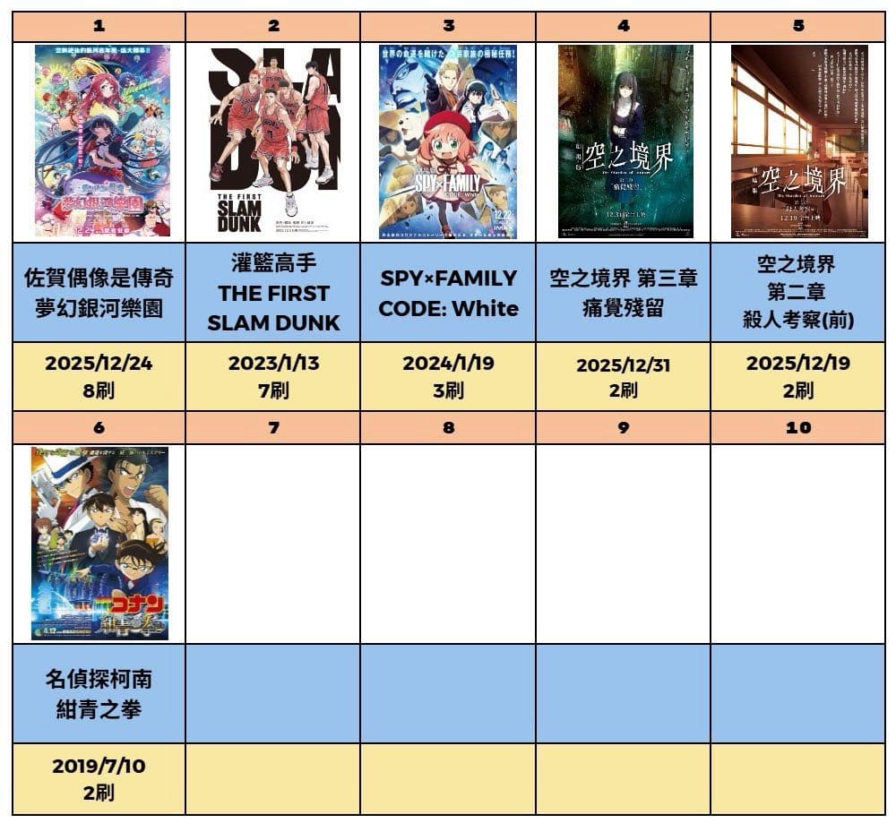 在我的二刷排行中也是衝超快短短幾天直接超車灌籃高手😂