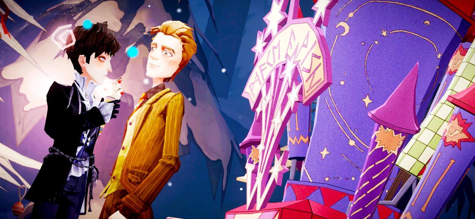 :接著首次帶「惡作劇大王代幣」進商店就會啟動介紹動畫,「衛氏巫師法寶店」放著一台奇怪又特殊的販賣機,還很活潑的亂動,放魔法煙花,