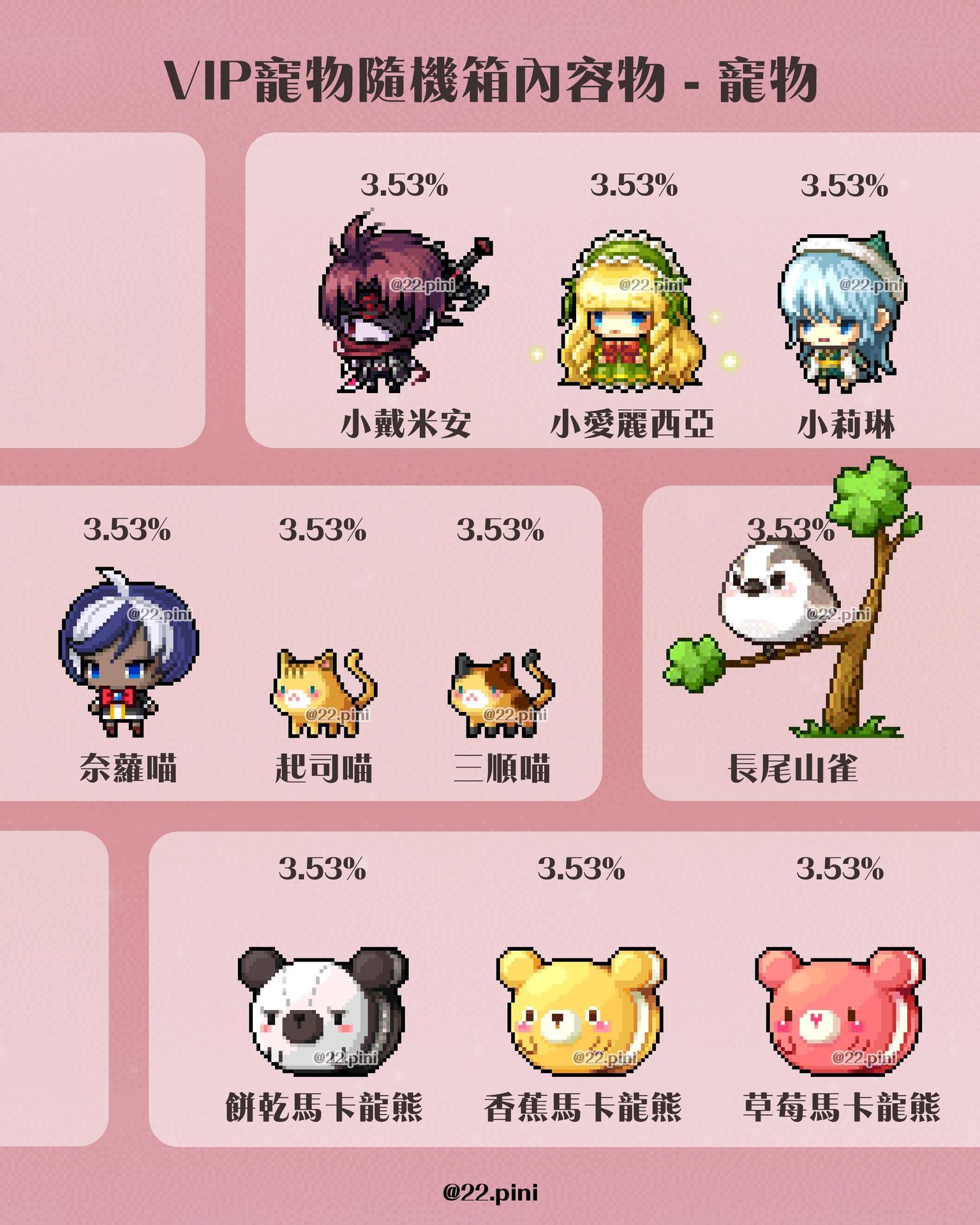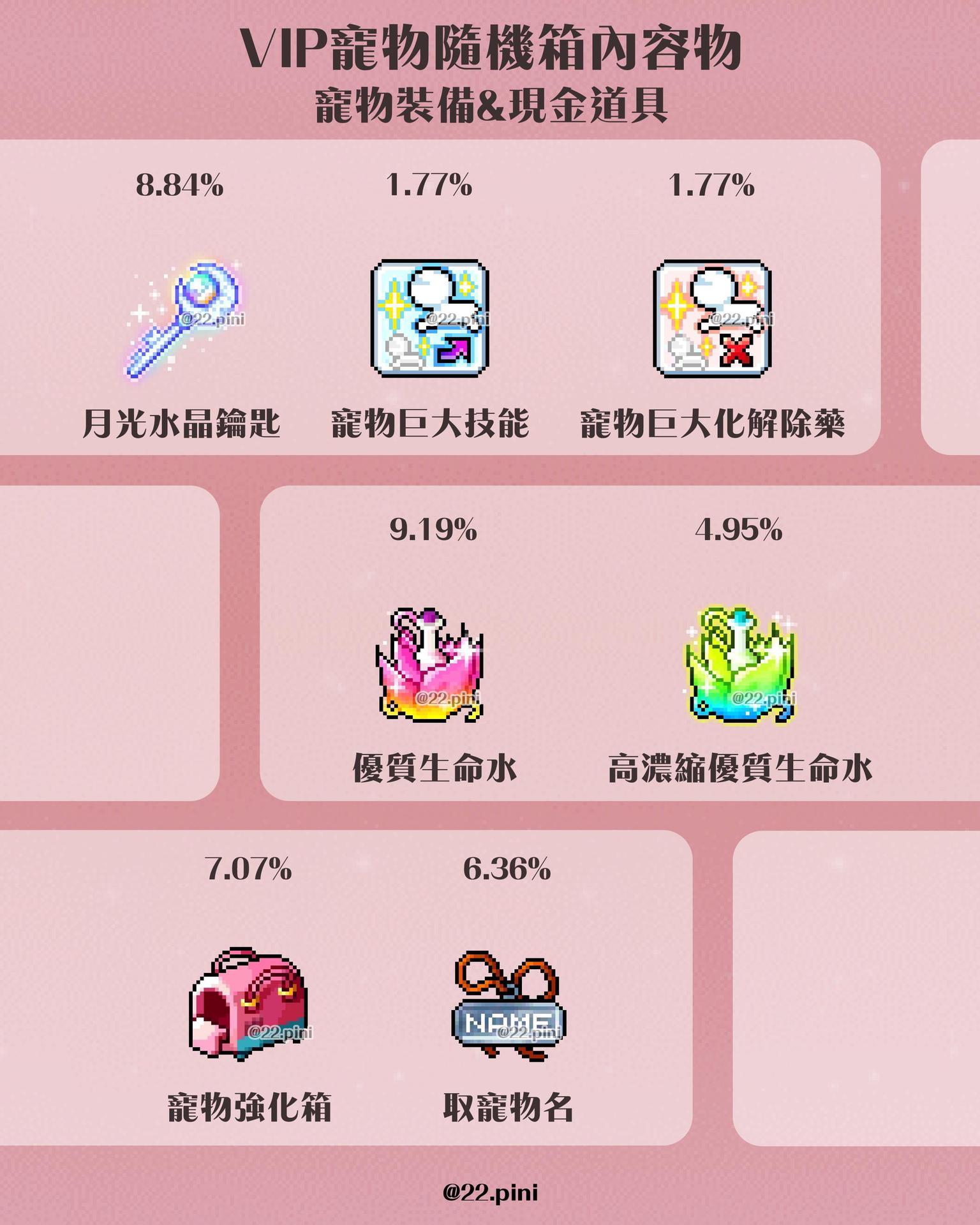 新楓之谷 - VIP寵物隨機箱 第二期 內容物與機率