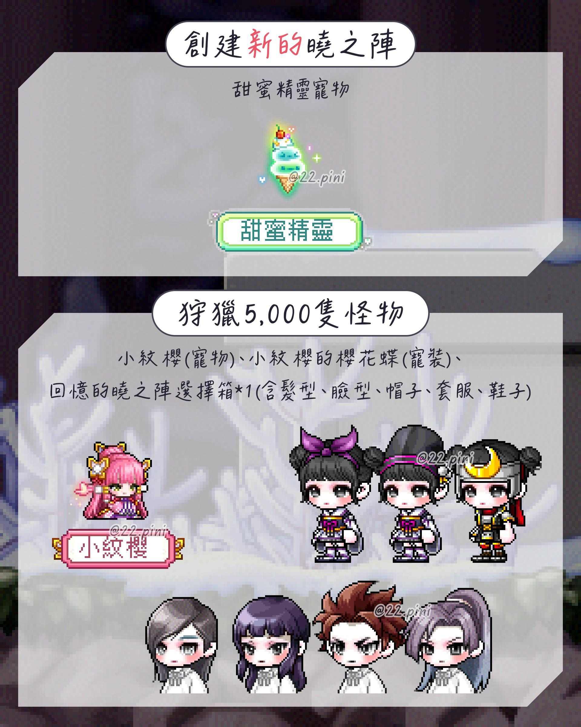 ▸ 甜蜜精靈僅能以新創曉之陣角色取得,其餘獎勵新/舊曉之陣角色皆可取得