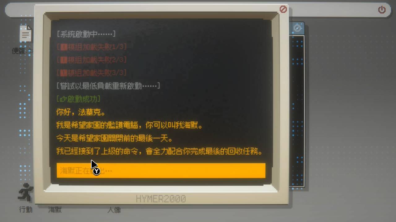 過程中如果有任何問題,或是遇到卡關,可以跟桌面上的〈海默〉進行對話,〈海默〉會根據玩家的輸入內容,提供相對應的幫助,有點像運用AI工具,但畢竟不是真的AI,所以如果玩家的問題系統無法辨識,海默會胡言亂語