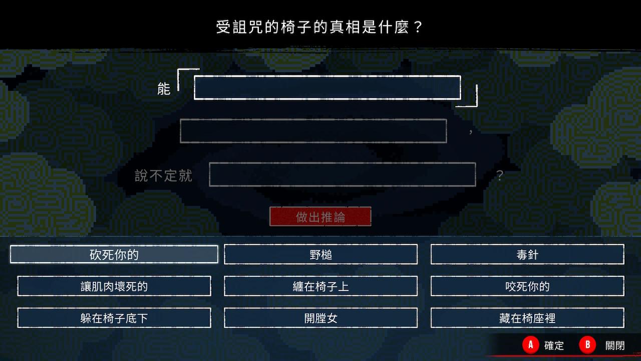 當完整把所有〈對話內容〉、〈對話對象〉、〈對話順序〉釐清後,就可以得知事件的全貌,也正是本作的目標