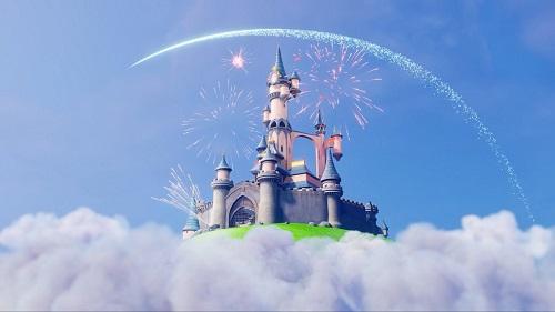(2)地圖南方的房子,注意鐘及空中移動的雲,還有背後的牆,包括雲朵和開寶箱的圖。