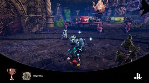 白金難度算是佛心,因為本作品其實有不少收集要素,如解放小精靈、別針、概念藝術圖、電影膠片等,而且一輪內拿不完,但只要求12個小精靈及56個電影膠片,別針和概念藝術圖完全沒要求,解白金可以完全忽略,支線任務也有不同結局,但獎盃條件很佛心,沒有要求全收集。獎盃條件有戰鬥相關次數獎盃、收集要素獎盃、主線劇情獎盃、收集機器唐老鴨、機器高飛、機器黛絲3個支線任務獎盃、顏料打倒所有頭目獎盃、稀釋劑打倒所有頭目獎盃等,因此至少要走2輪。整體而言,我覺得還不錯玩。