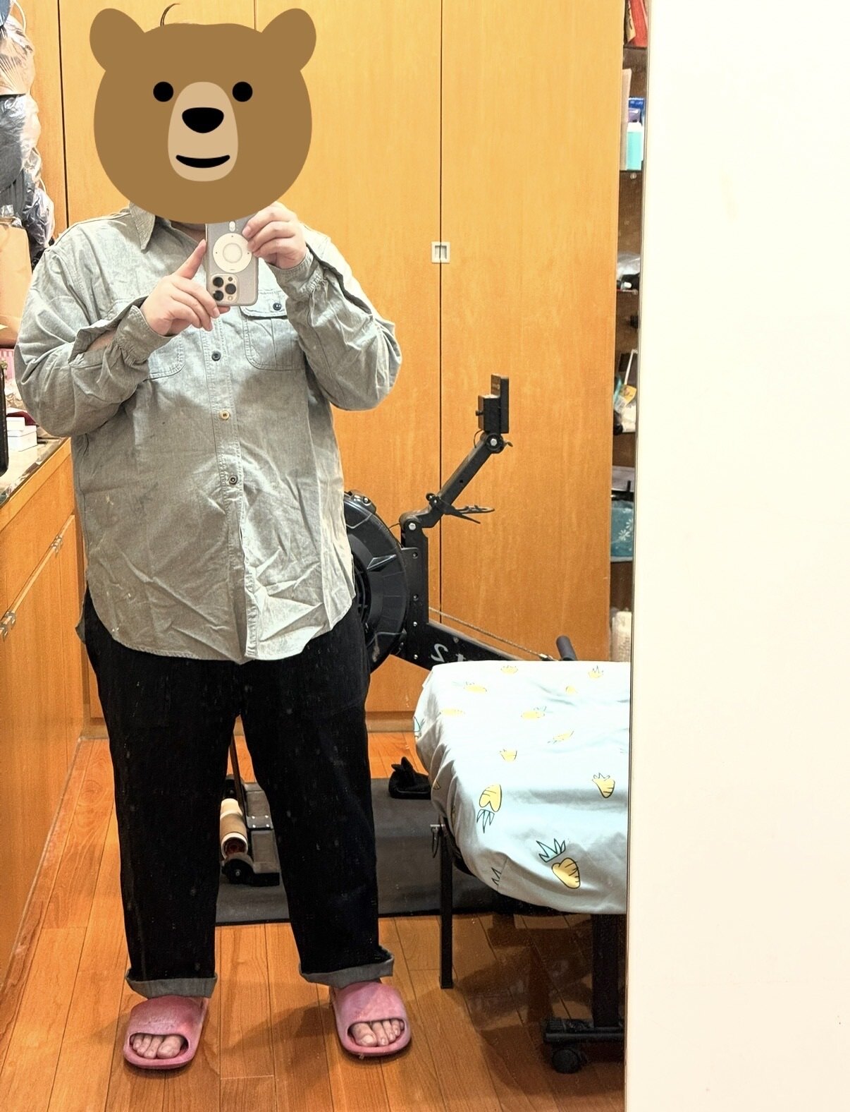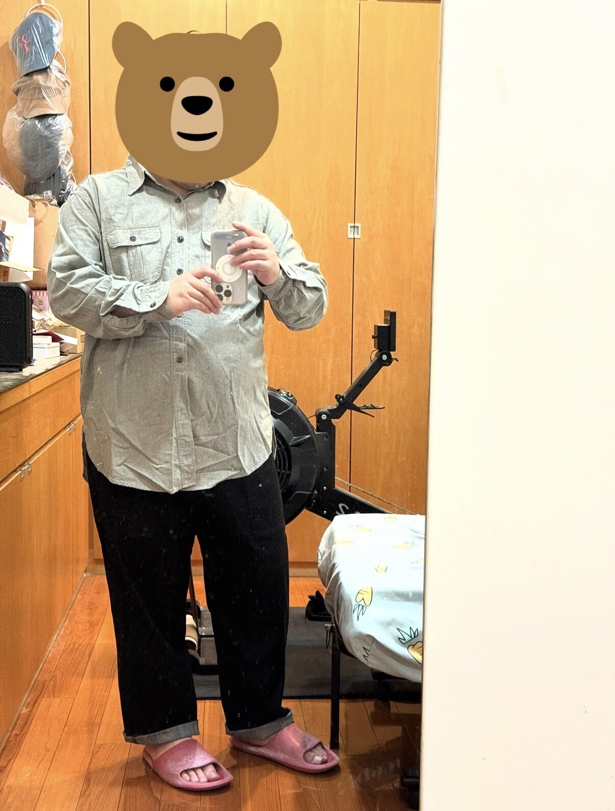 最後分享一下實穿感想跟洗標,這件是日本製且百分之一百純棉,可以機洗、可以熨燙,基本上沒有什麼太大的額外維護成本。然後我個人這件拿的是 L 號大碼的,上身後覺得沒想像中那種很偏硬漢工裝風格的硬,但又還是有維持一定到的挺闊感,版型也是偏 oversized,可以滿好修飾掉我的大啤酒肚,整體來說真的挑不出來有什麼問題,真低讚👍